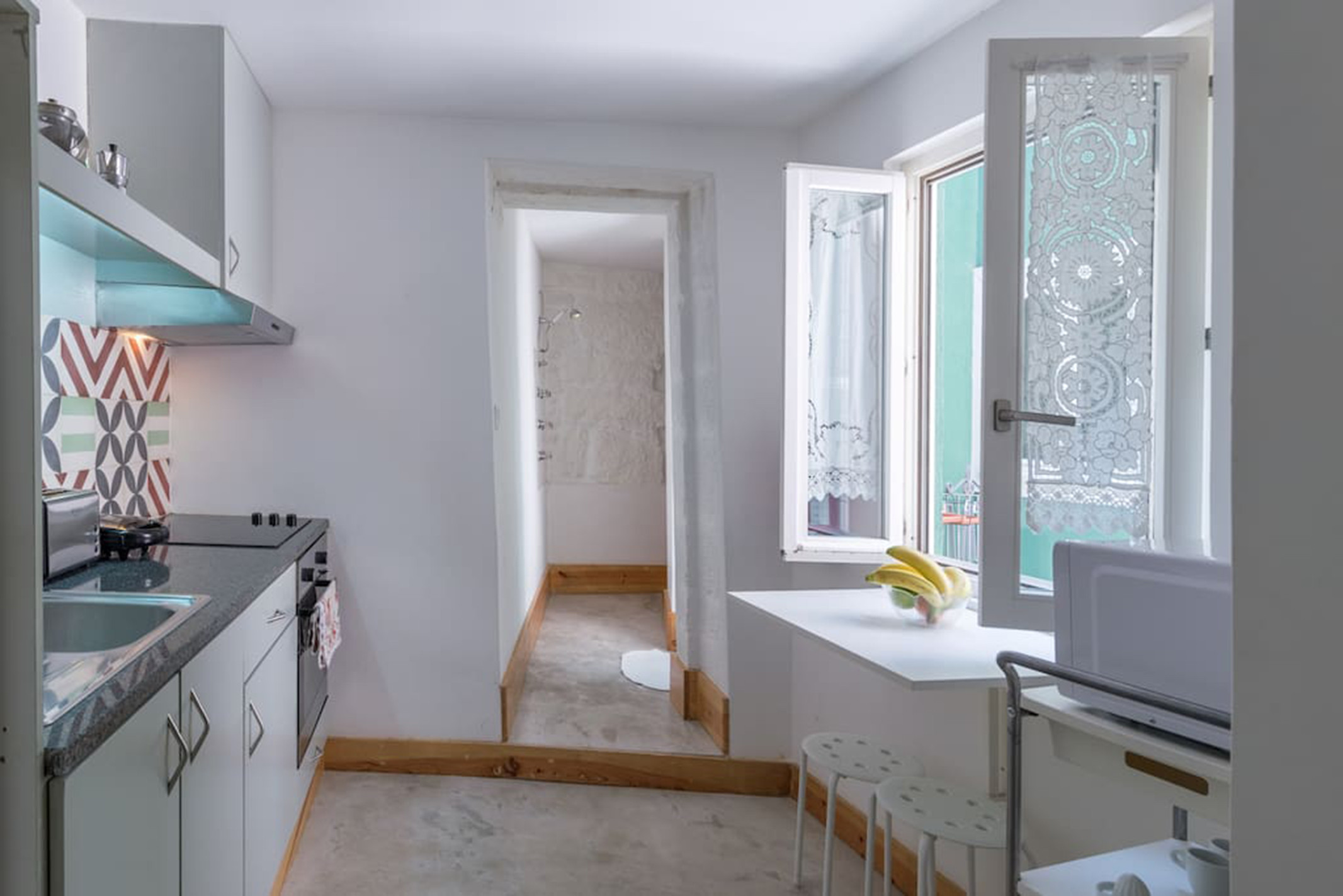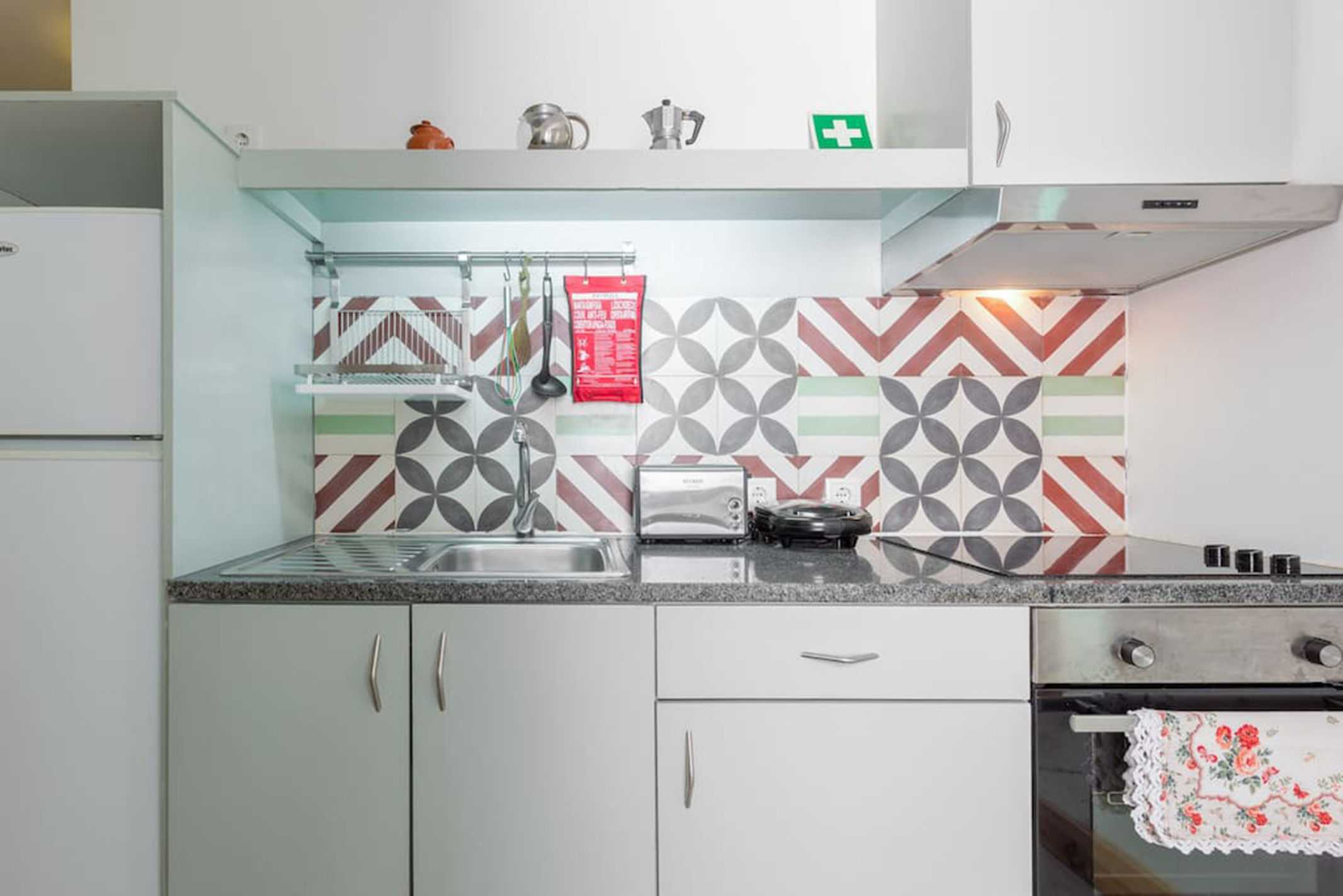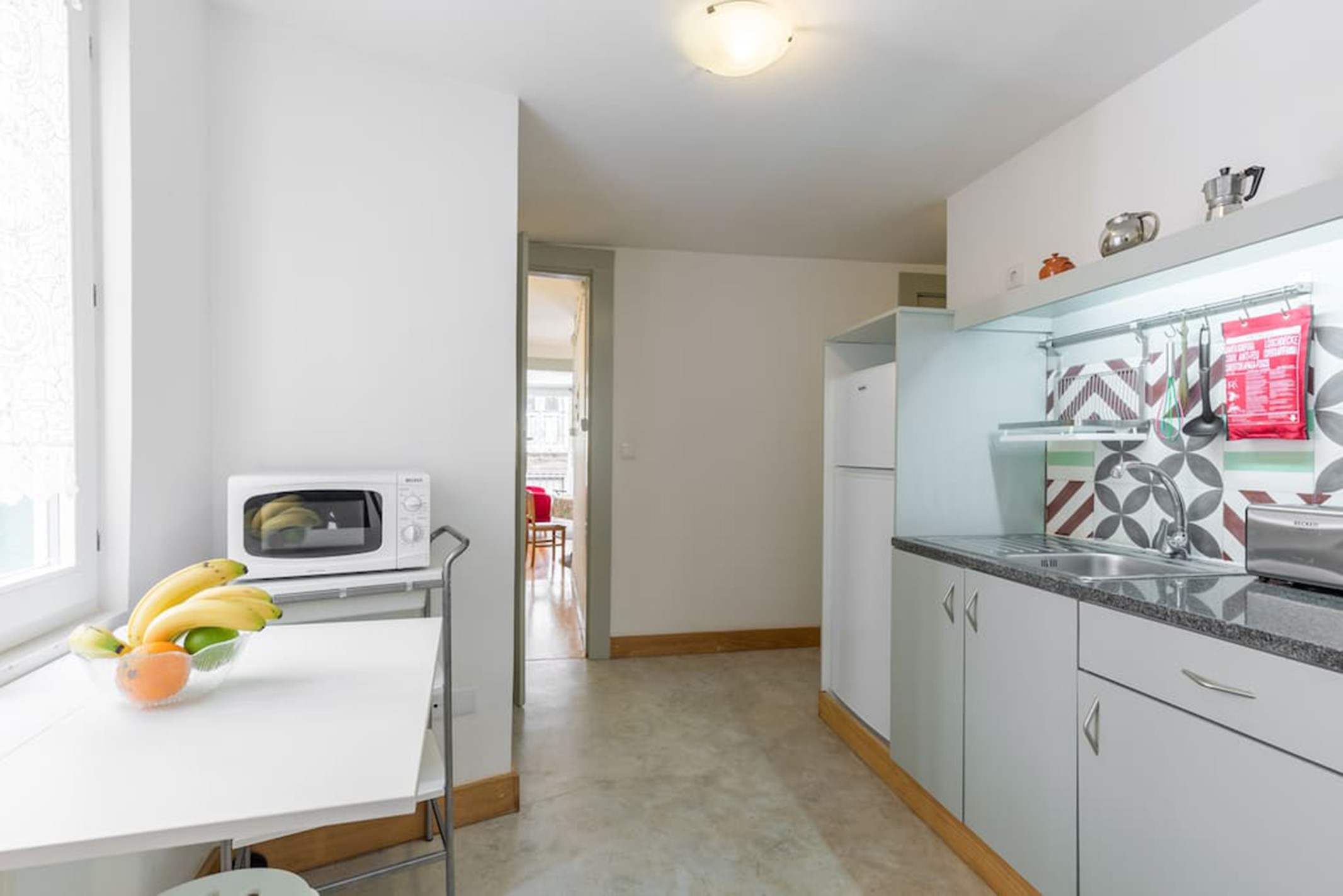 O apartamento apresenta um arranjo de dormida confortável com duas camas de casal - uma cama de casal standard e um sofá-cama de casal - garantindo alojamento flexível para até 4 hóspedes. A cozinha independente está totalmente equipada com eletrodomésticos modernos, incluindo placa de vitrocerâmica, frigorífico, congelador, forno, micro-ondas, máquina de café e todo o utensílio de cozinha necessário, permitindo-lhe preparar refeições deliciosas durante a sua estadia.