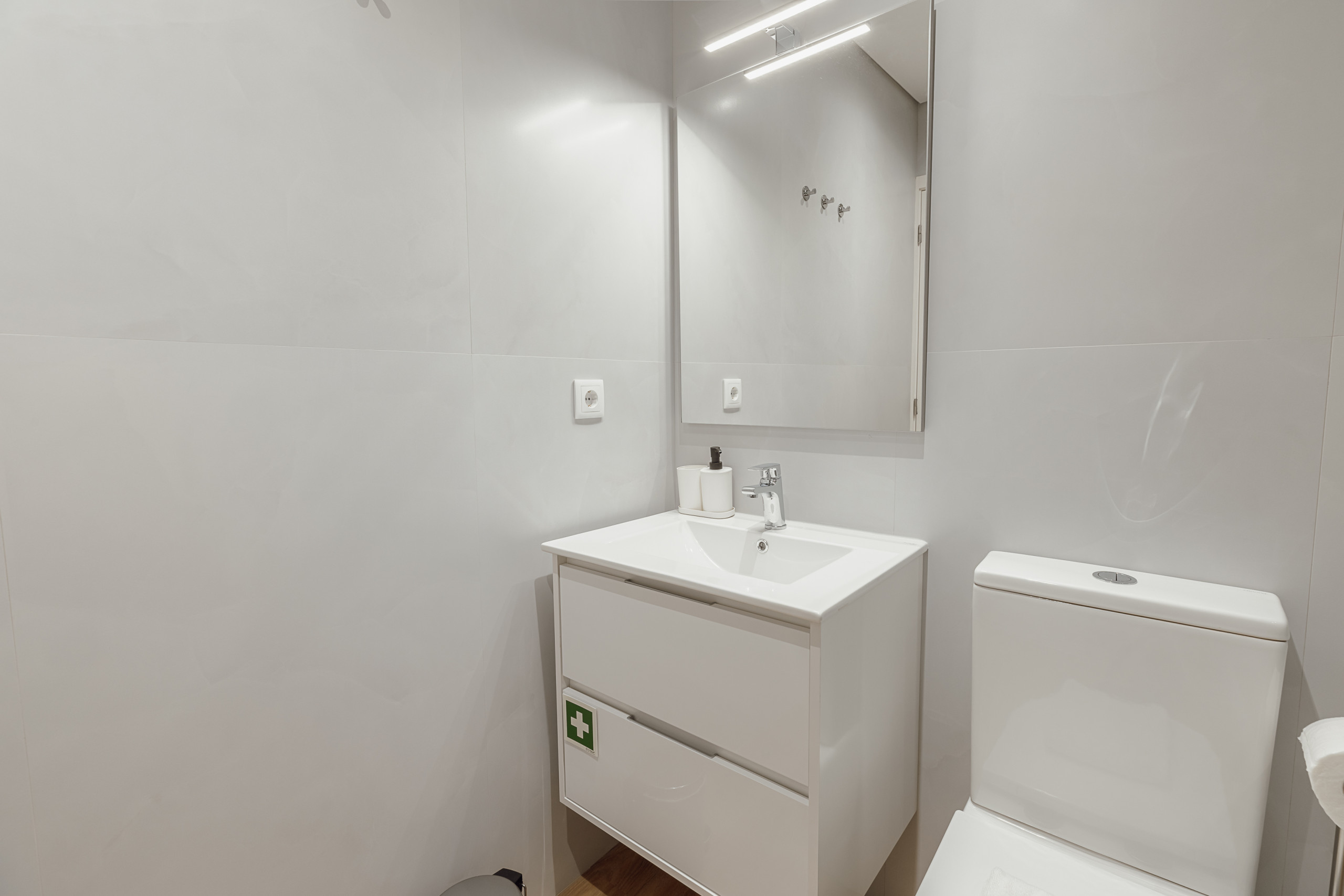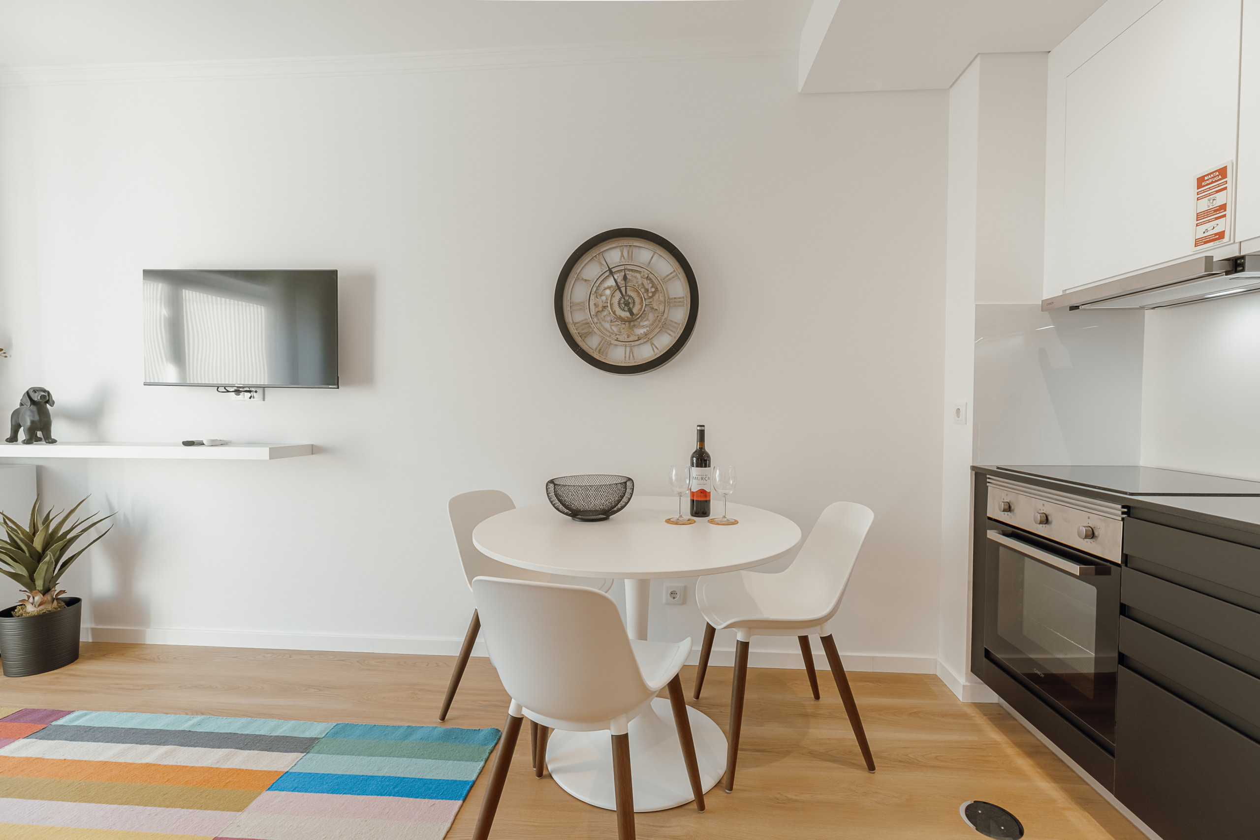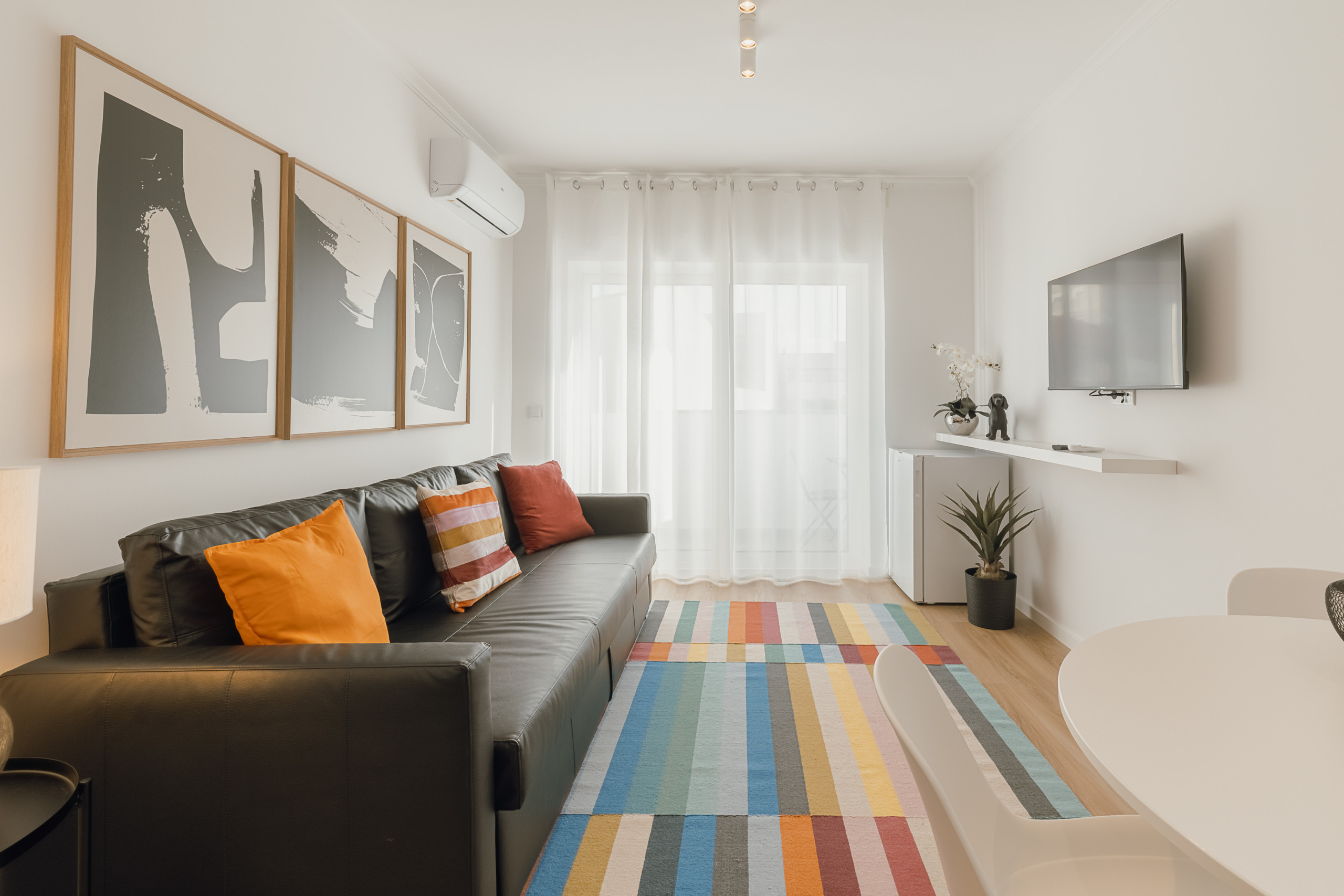 O espaço é composto por um quarto com cama de casal, uma casa de banho com duche, e uma zona social em conceito open space, que une a sala de estar à cozinha. A sala conta com um sofá-cama que acomoda até 2 pessoas, oferecendo maior flexibilidade na ocupação. A cozinha está totalmente equipada com máquina de lavar loiça, frigorífico, fogão, micro-ondas, utensílios de cozinha e máquina de café, ideal para quem prefere fazer as suas próprias refeições.