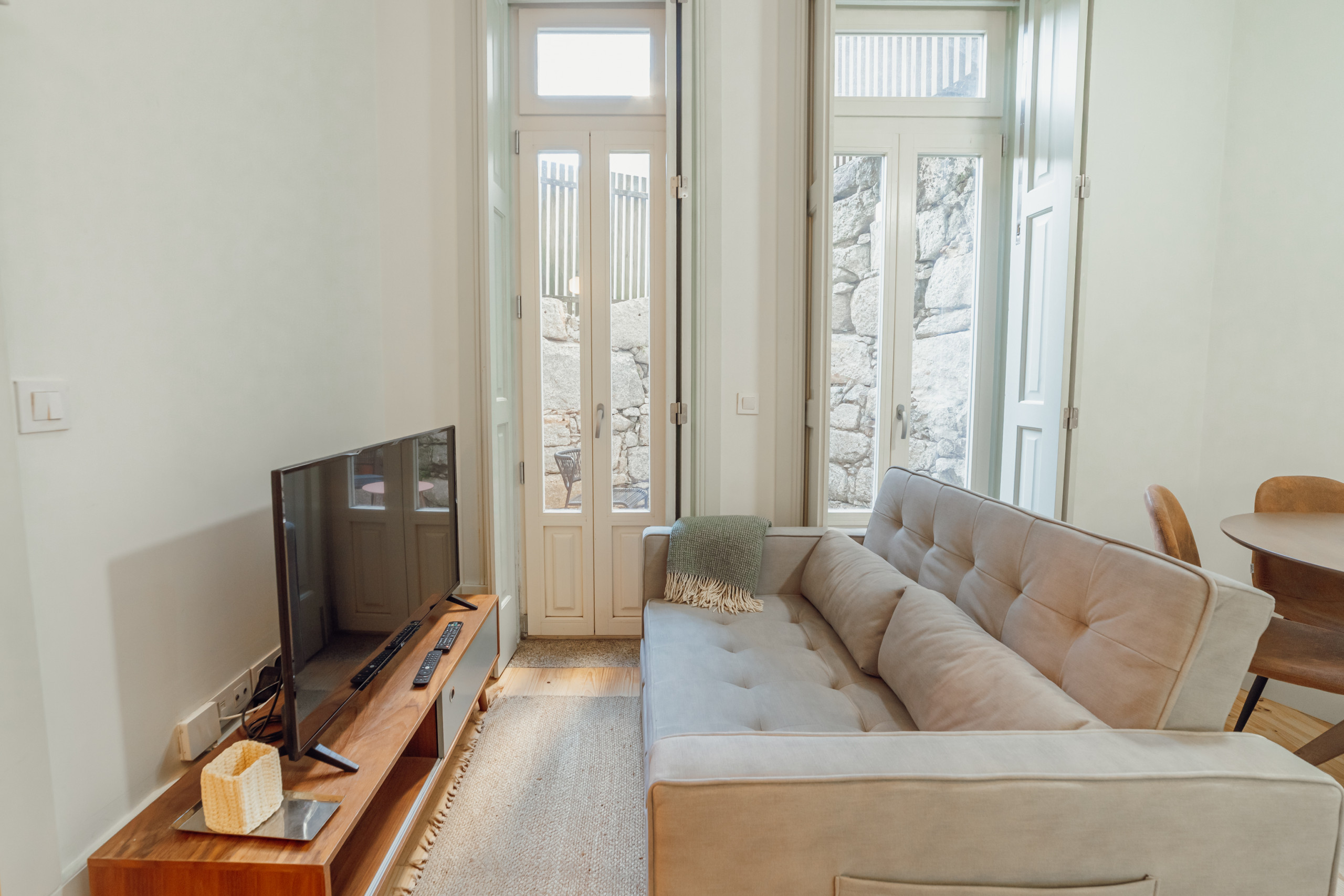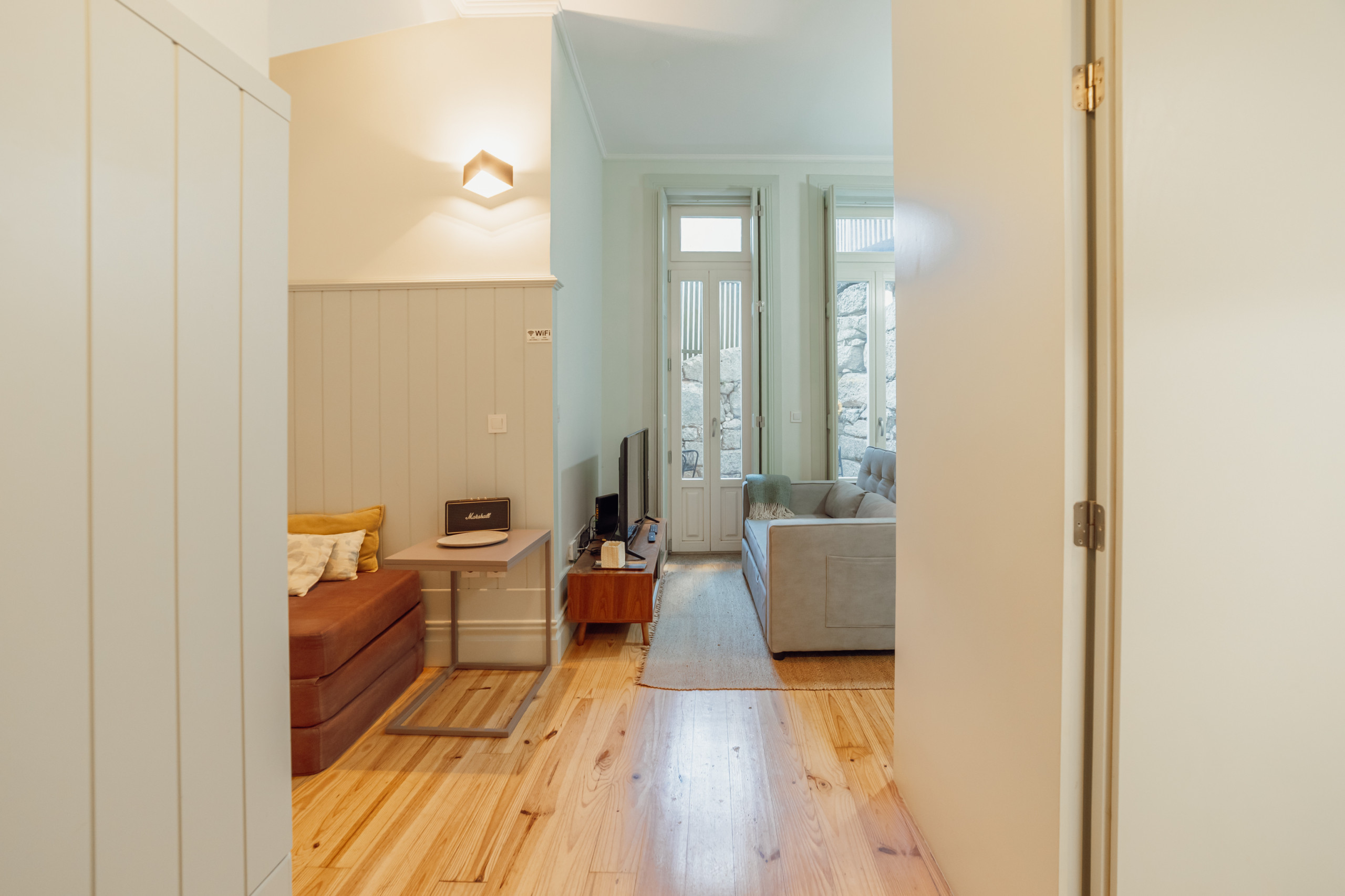 O design geral realça uma atmosfera aberta e arejada, reforçada pela simplicidade da disposição. Uma mistura perfeita de forma e função, este estúdio na Rua da Constituição oferece um santuário elegante e confortável para quem procura um espaço de vida contemporâneo no coração do Porto.