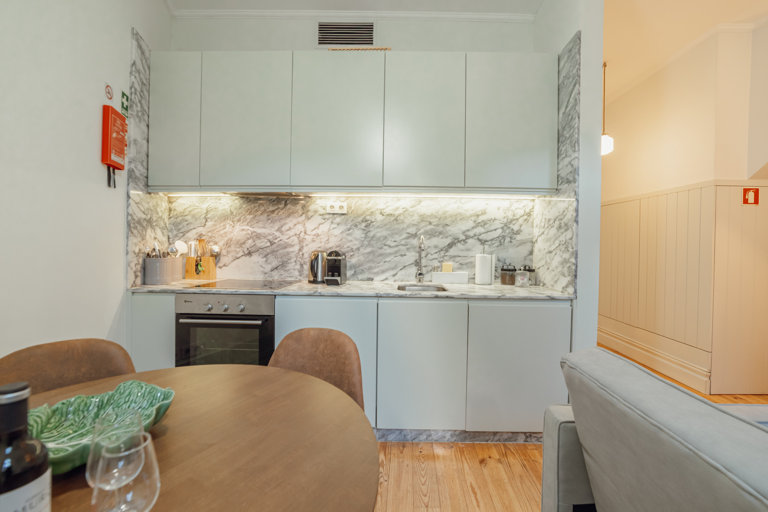 O design geral enfatiza uma atmosfera aberta e arejada, reforçada pela simplicidade do layout. Uma mistura perfeita de forma e função, este estúdio na Rua da Constituição