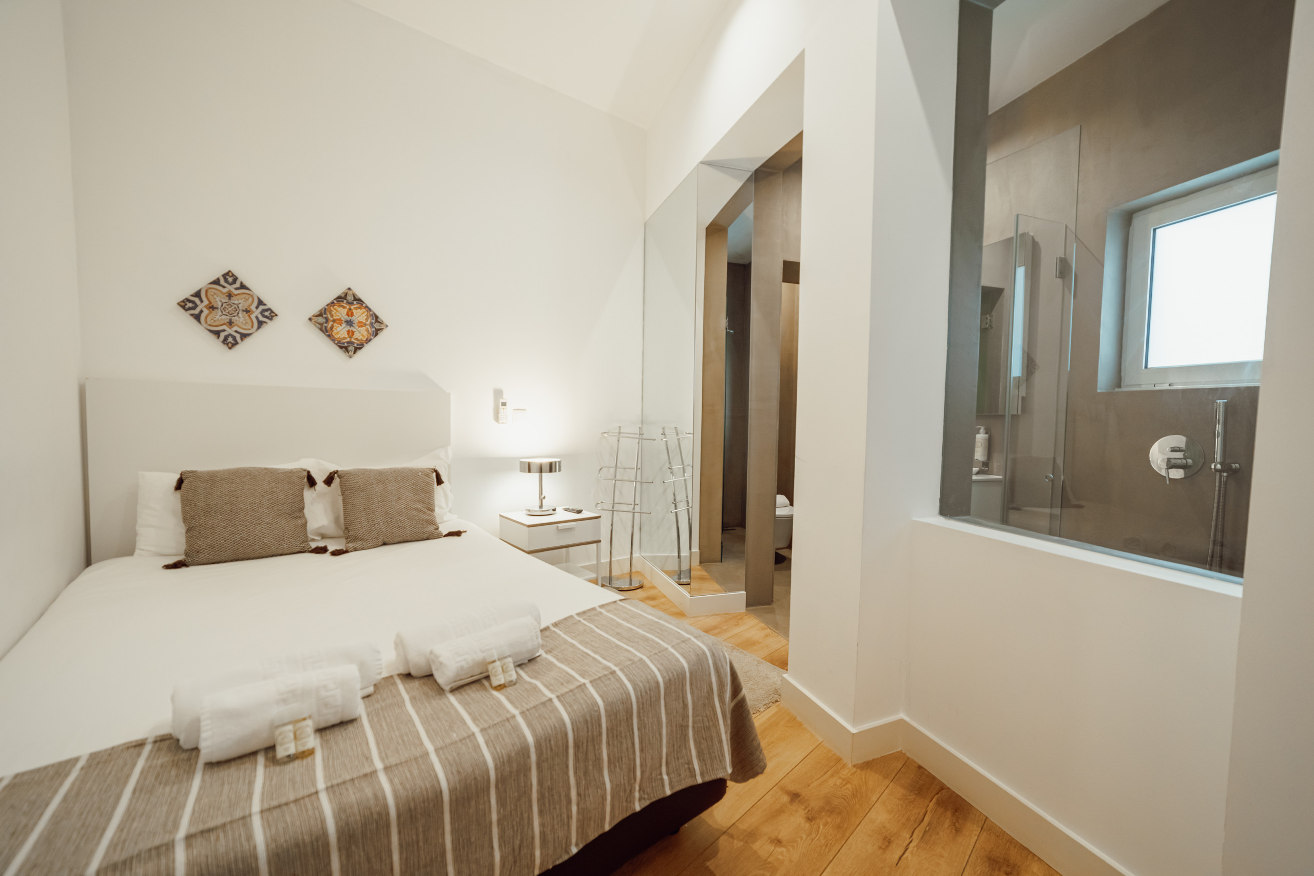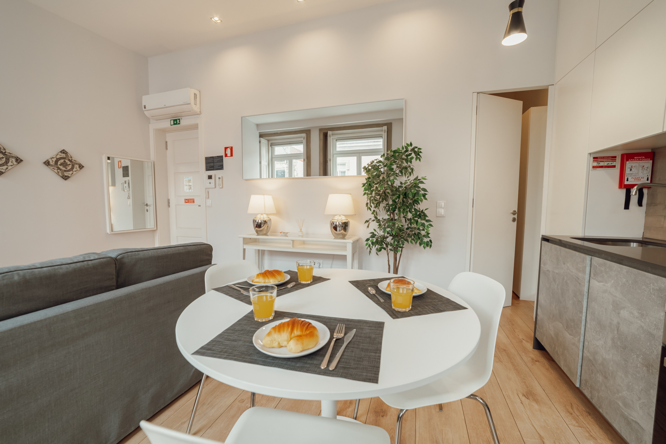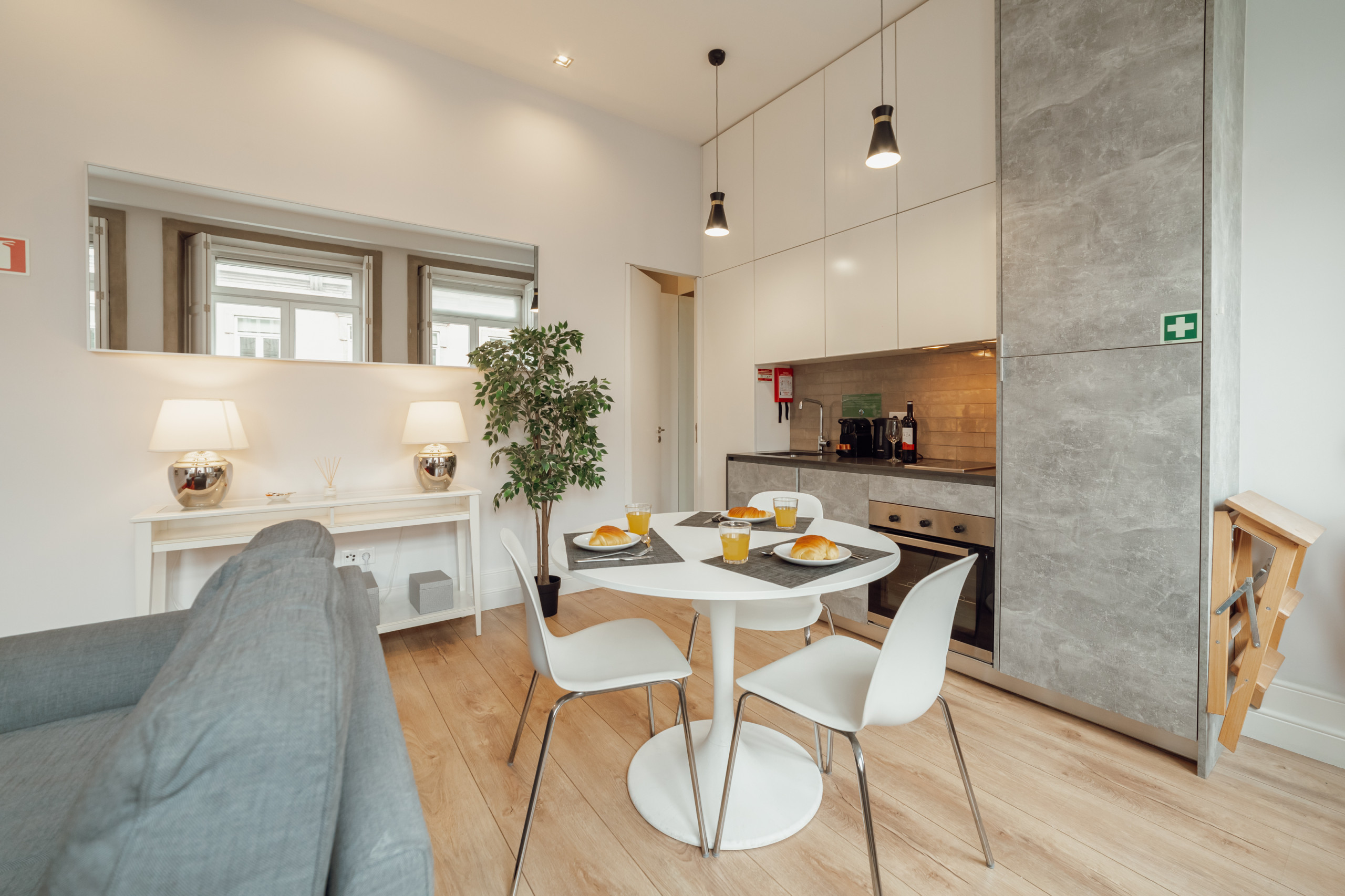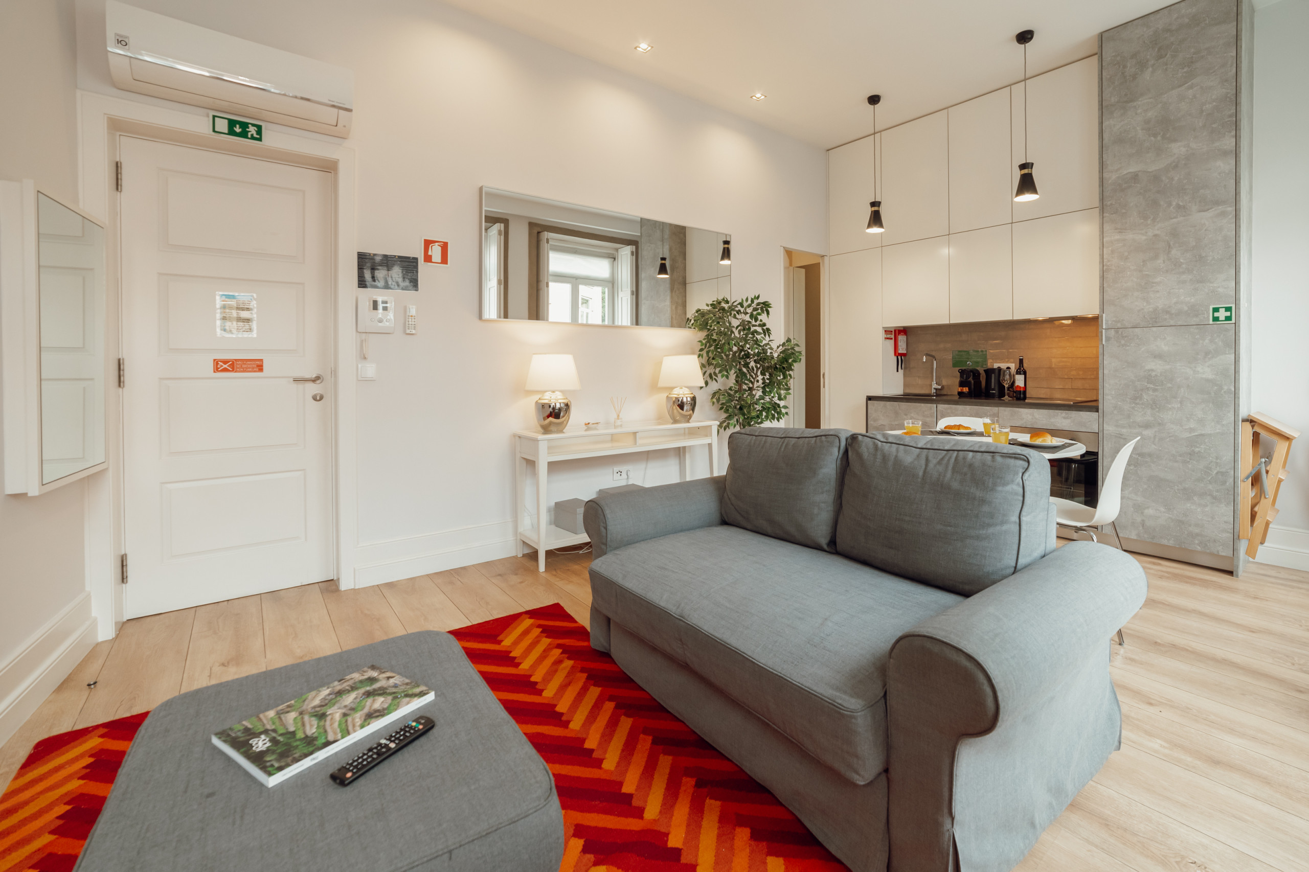 O design geral enfatiza uma atmosfera aberta e arejada, reforçada pela simplicidade do layout. Uma mistura perfeita de forma e função, este estúdio na Rua da Constituição