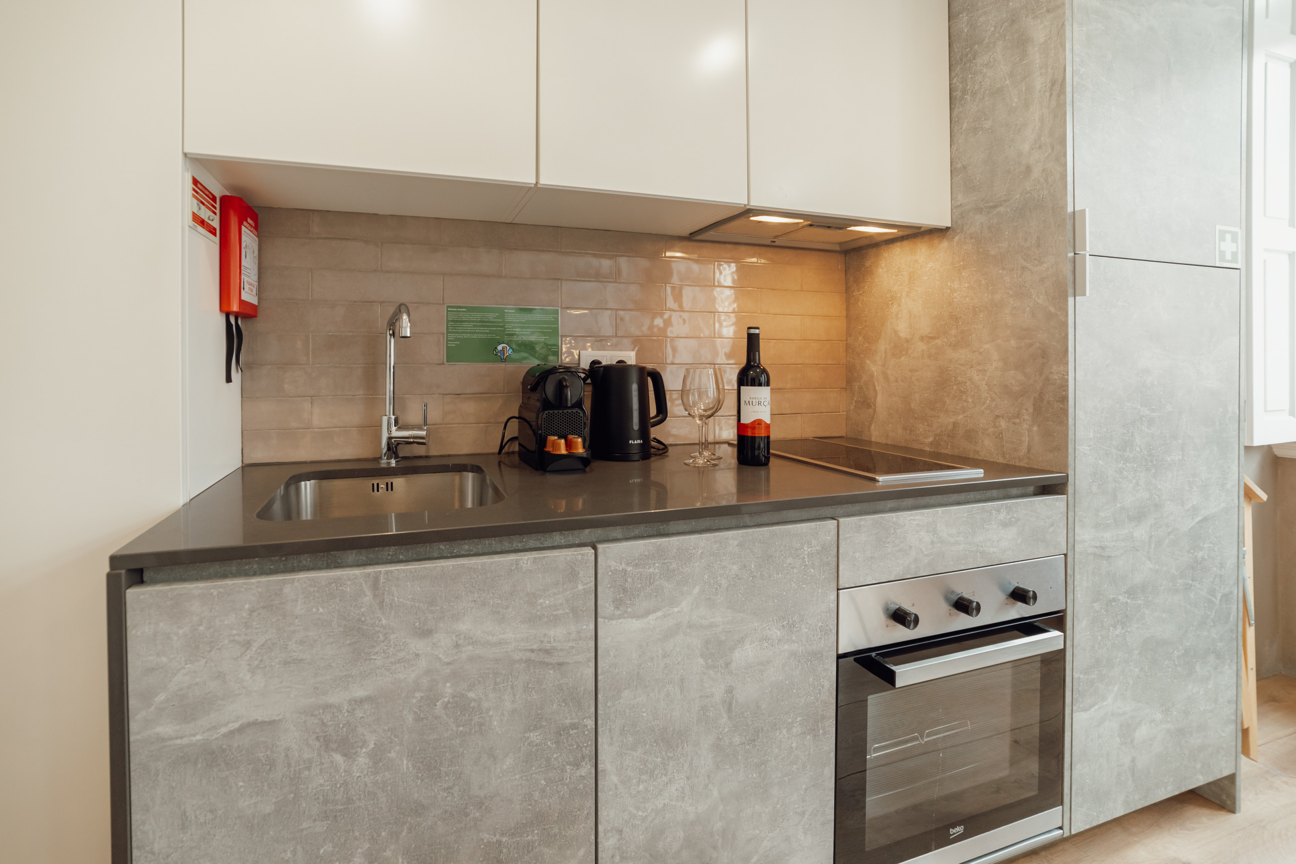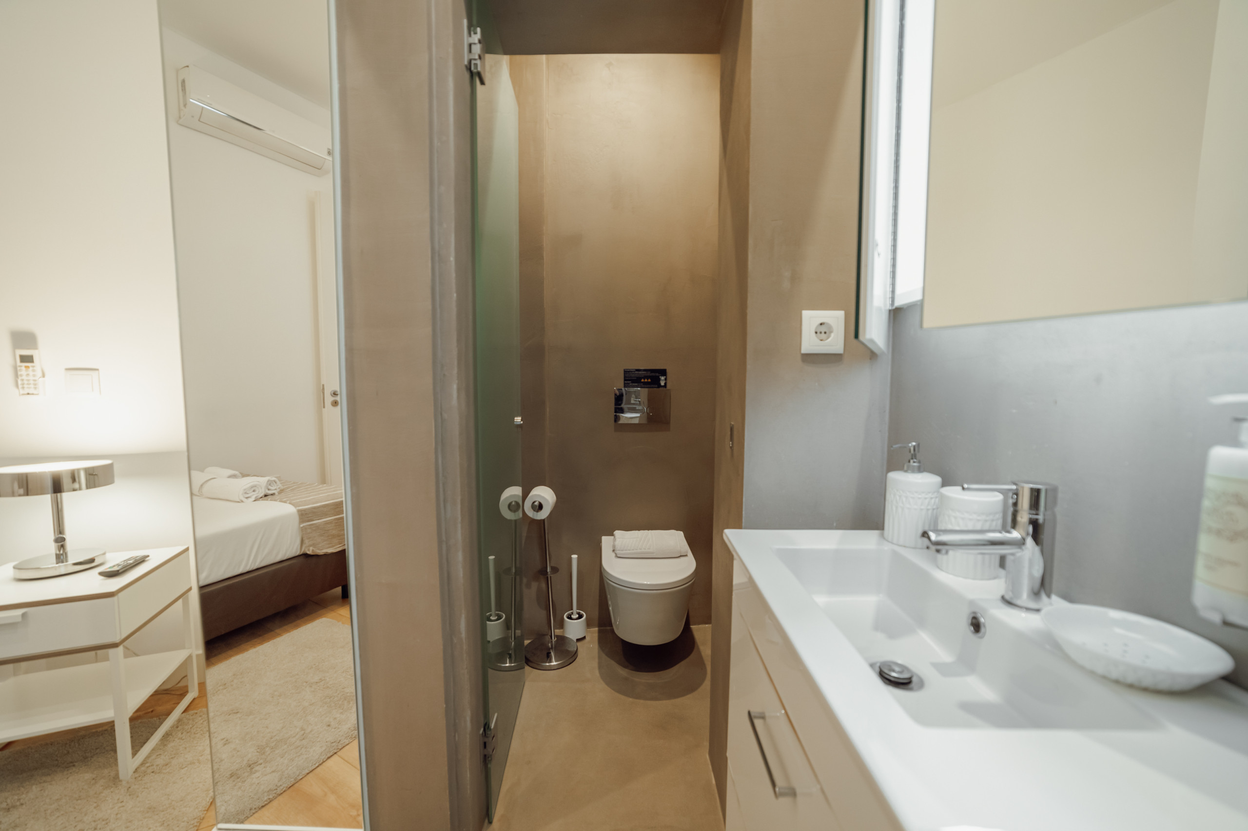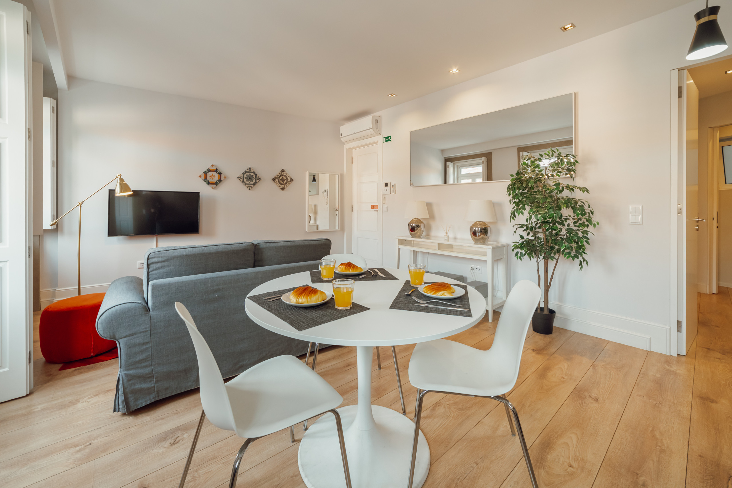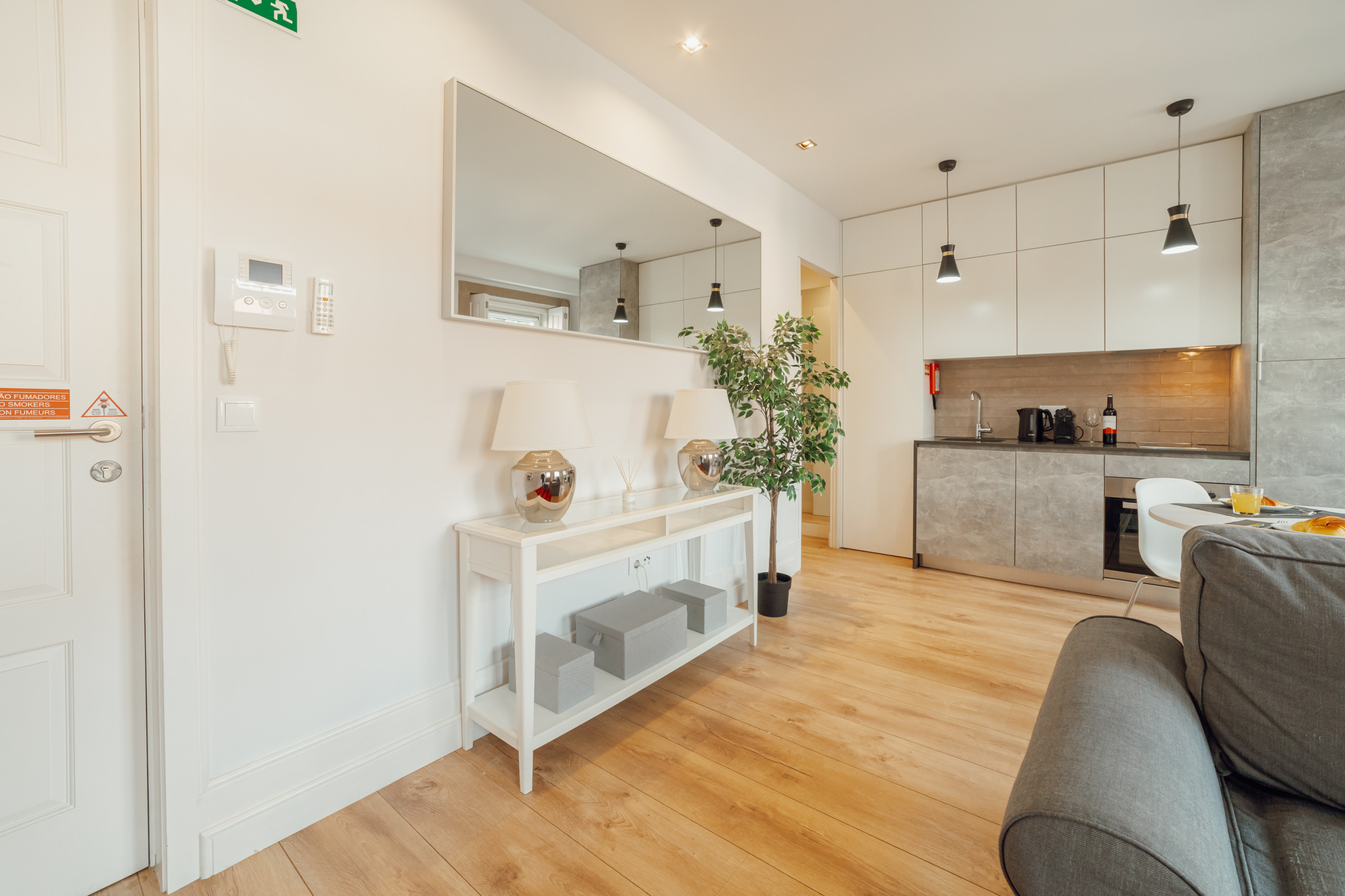 O design geral enfatiza uma atmosfera aberta e arejada, reforçada pela simplicidade do layout. Uma mistura perfeita de forma e função, este estúdio na Rua da Constituição