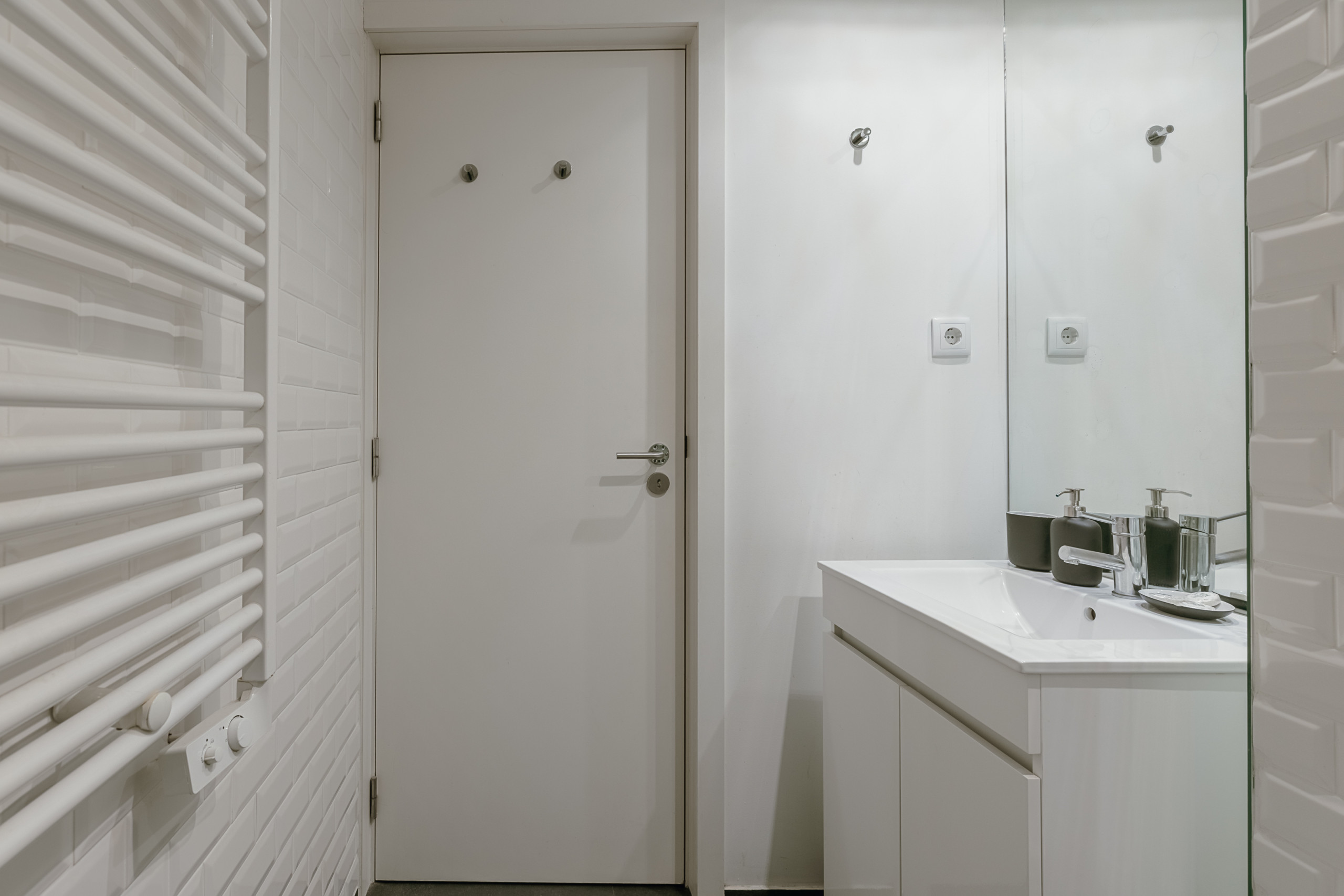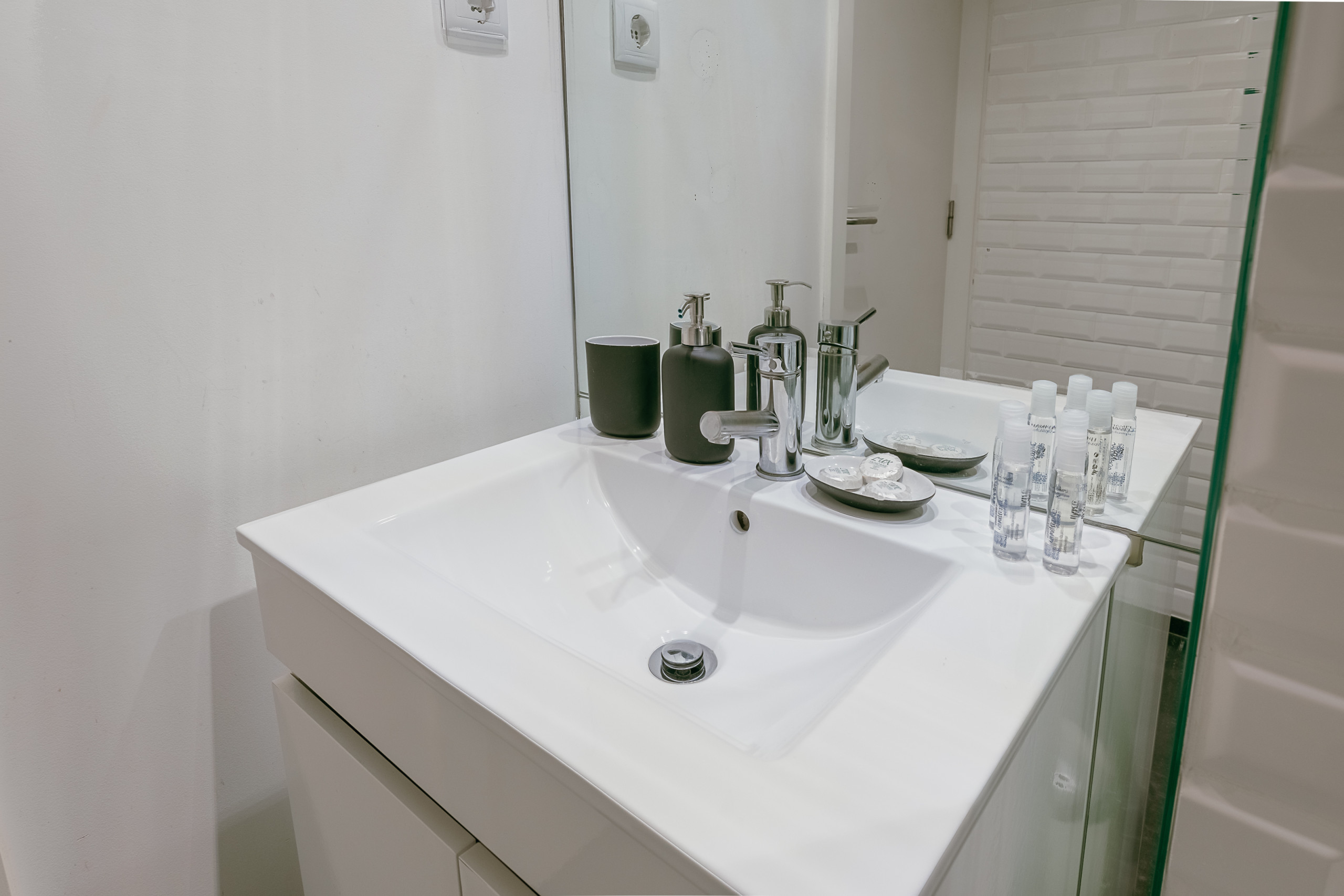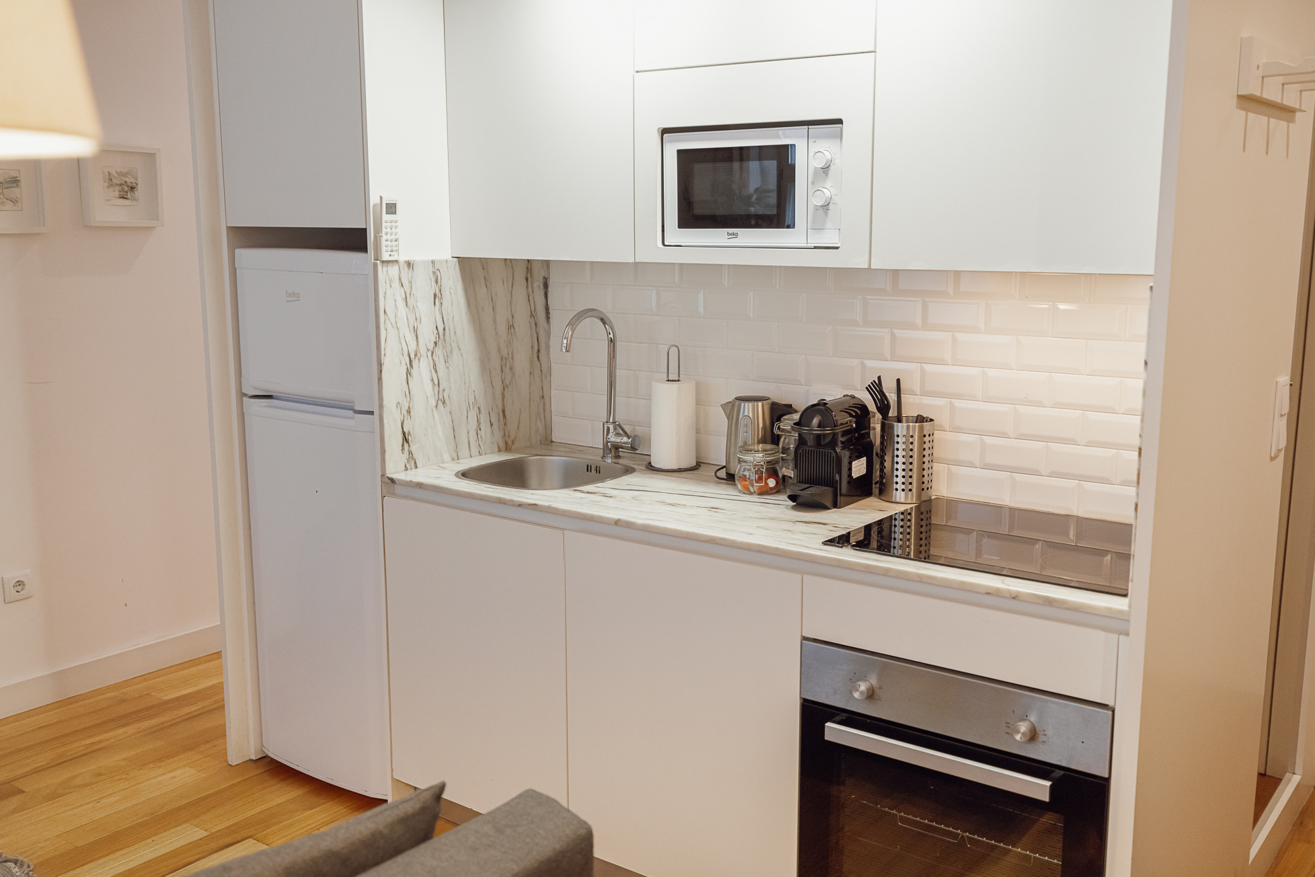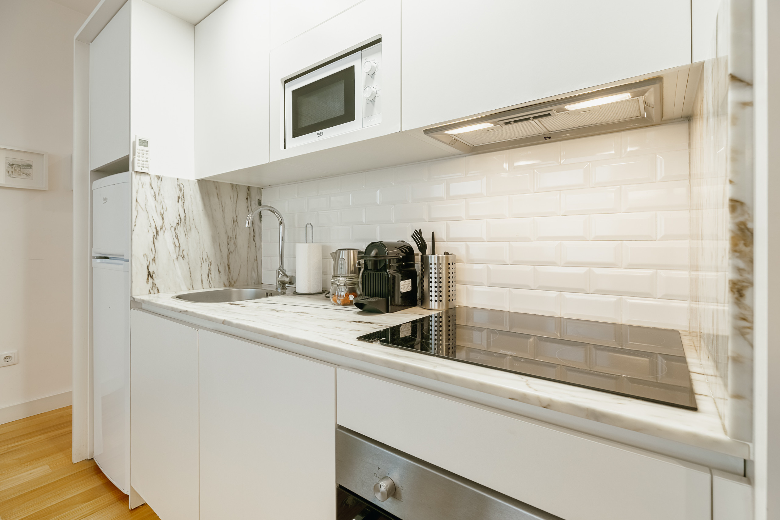 O design geral enfatiza uma atmosfera aberta e arejada, reforçada pela simplicidade do layout. Uma mistura perfeita de forma e função, este estúdio na Rua da Constituição