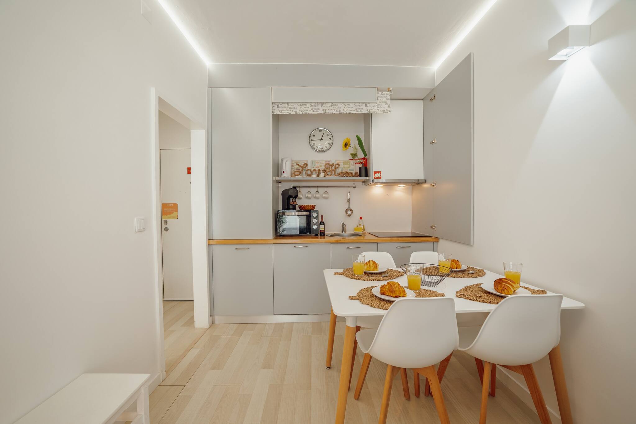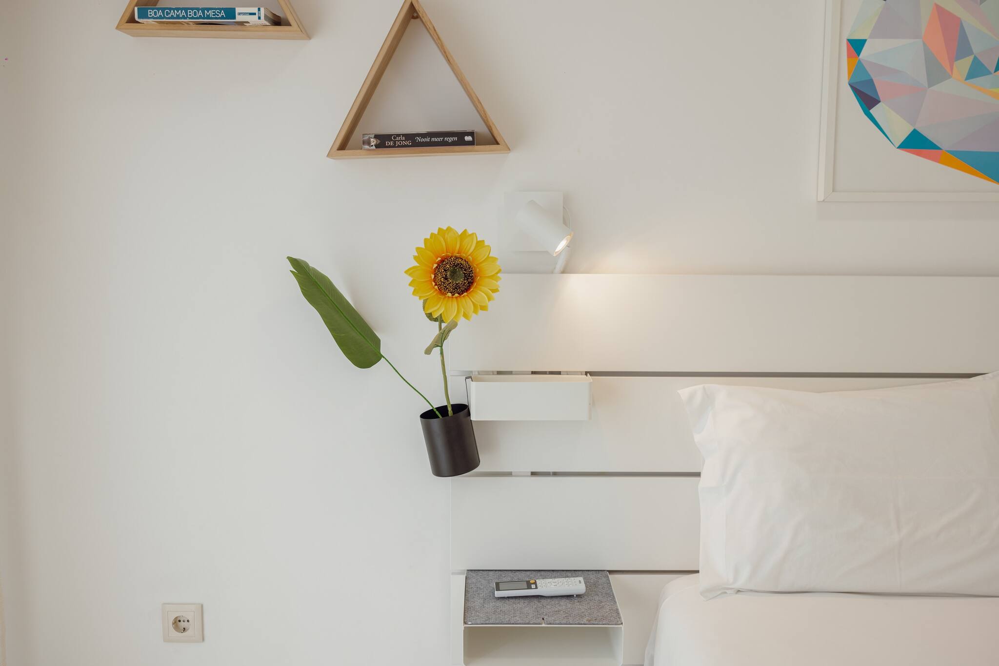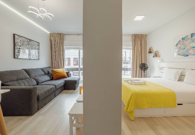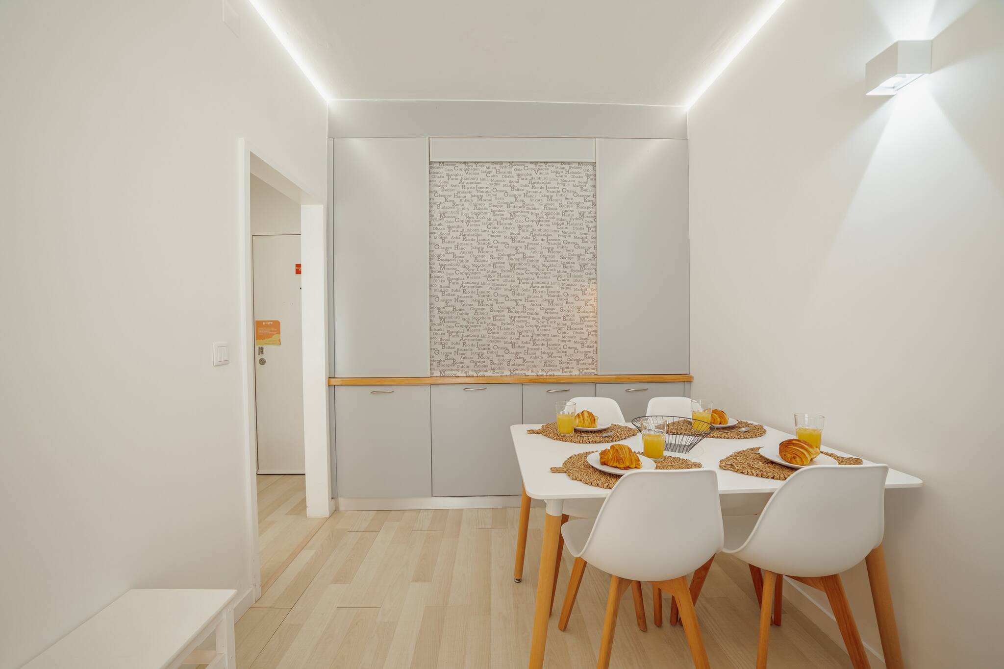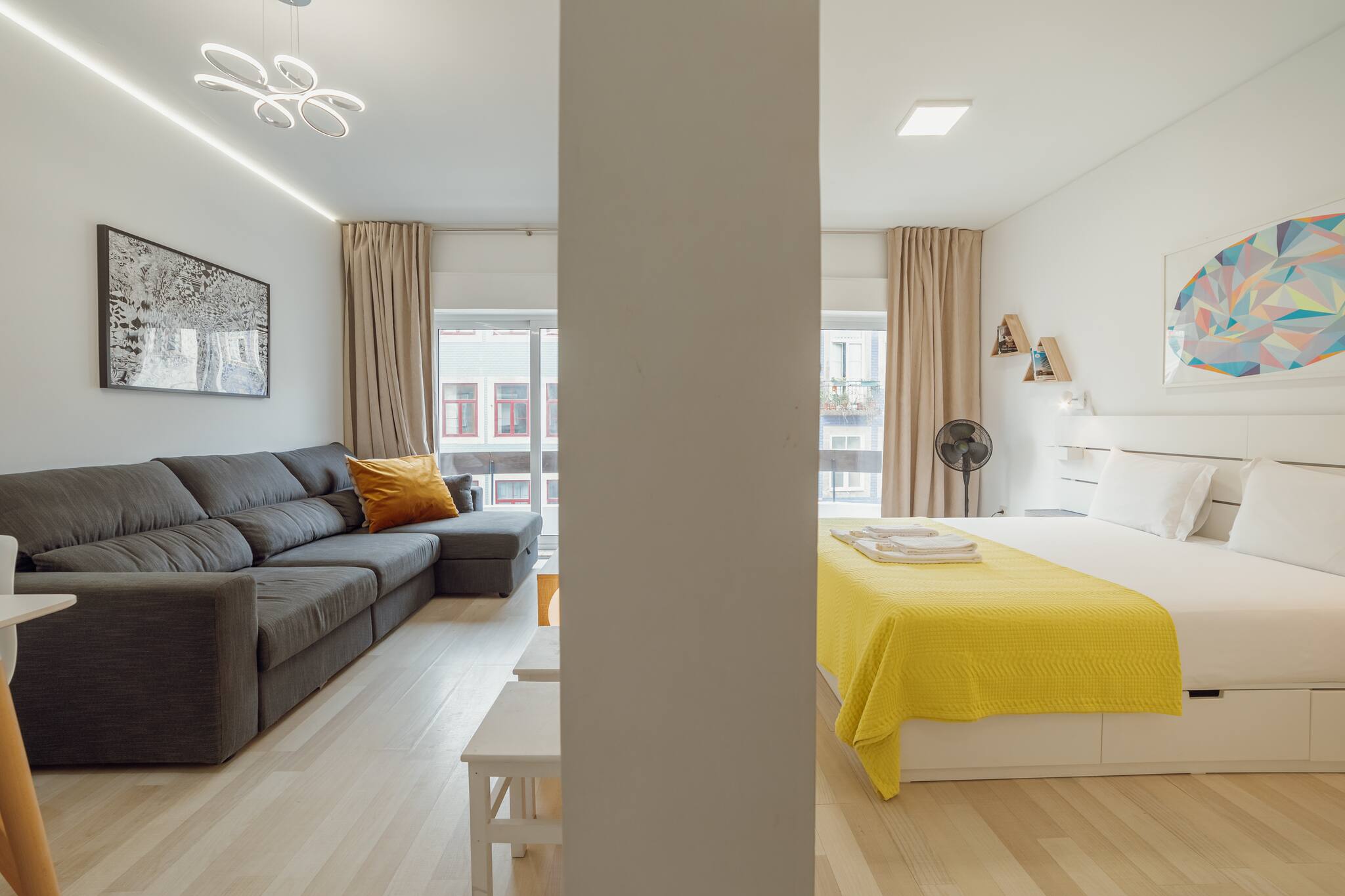 O design geral enfatiza uma atmosfera aberta e arejada, reforçada pela simplicidade do layout. Uma mistura perfeita de forma e função, este estúdio na Rua da Constituição