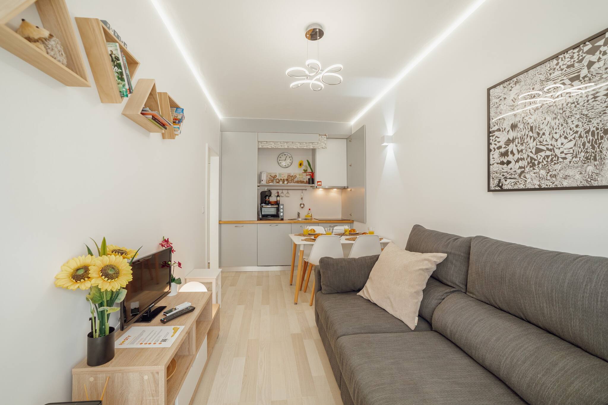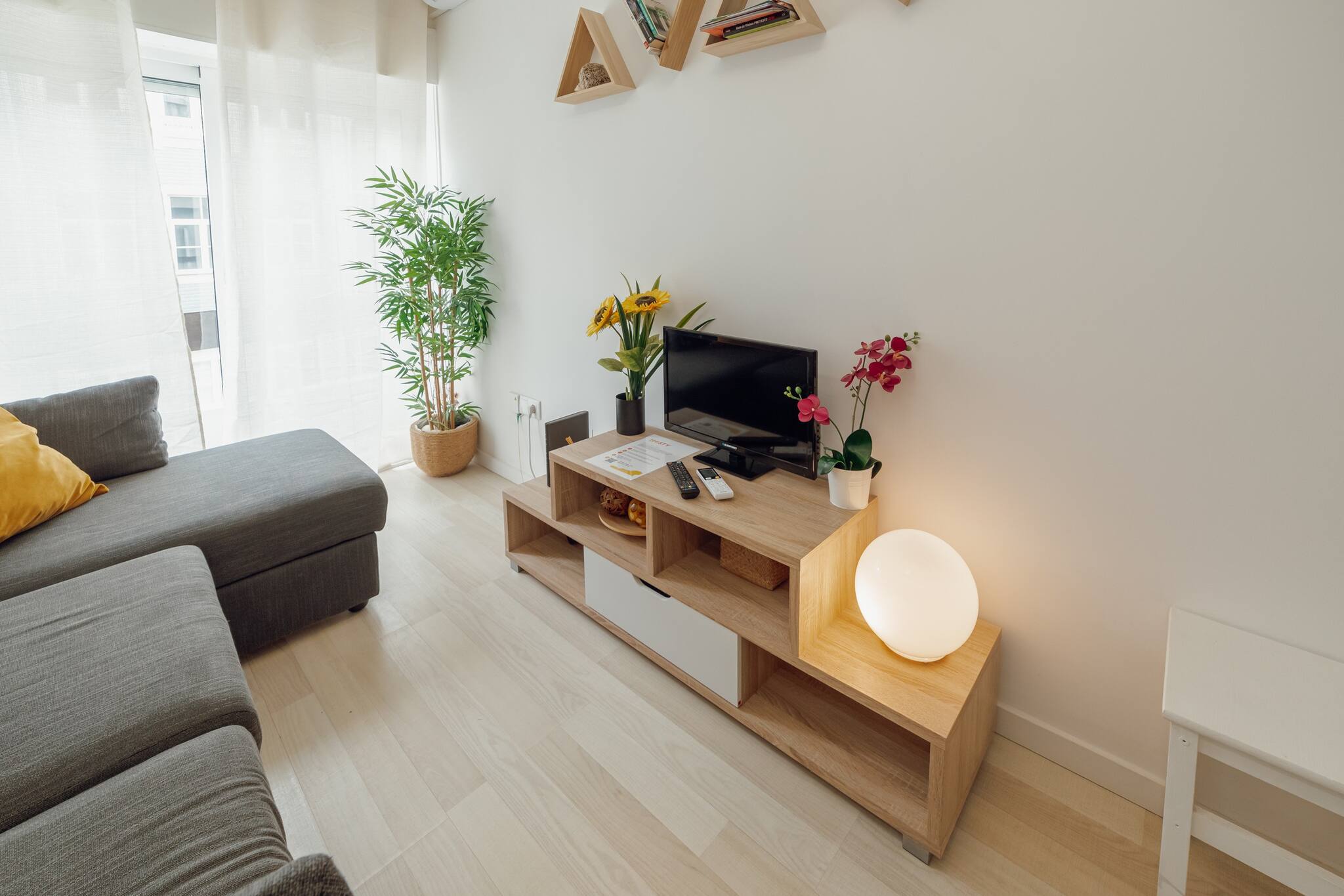 Sala de estar: Uma sala de estar elegante e acolhedora, com um sofá-cama que pode acomodar confortavelmente dois hóspedes adicionais, uma televisão de ecrã plano com canais por cabo e acesso Wi-Fi gratuito para o manter ligado.