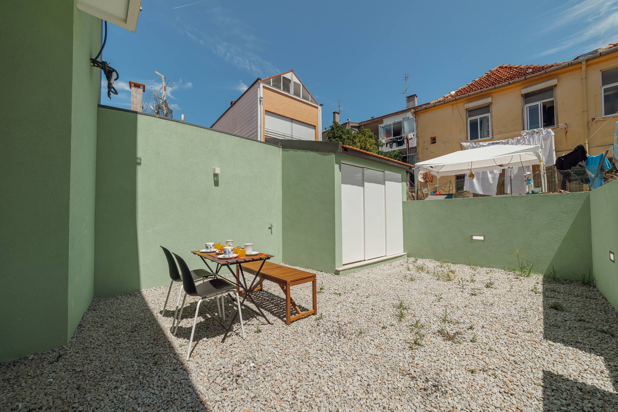 Saia para o exterior e você encontrará um pequeno, mas encantador jardim, com uma área de estar acolhedora, criando um cenário idílico para atividades ao ar livre ou simplesmente relaxar com um bom livro.
