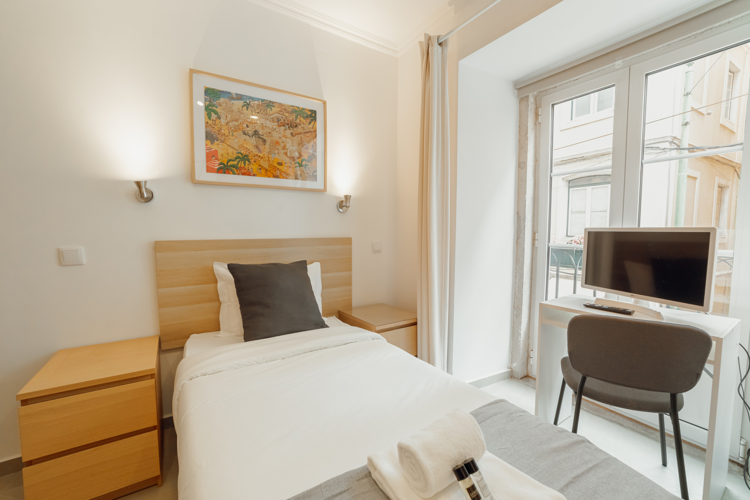 O quarto em Lisboa tem 1 quarto(s) e capacidade para 1 pessoa(s). Alojamento de 12 m² confortável e de construção recente. Localizado numa zona residencial zone no centro urbano.Dispõe de elevador, acesso internet (wifi), secador de cabelo, varanda, aquecimento com radiadores eléctricos, 1 Televisão.A cozinha, está equipada com jarro eléctrico.