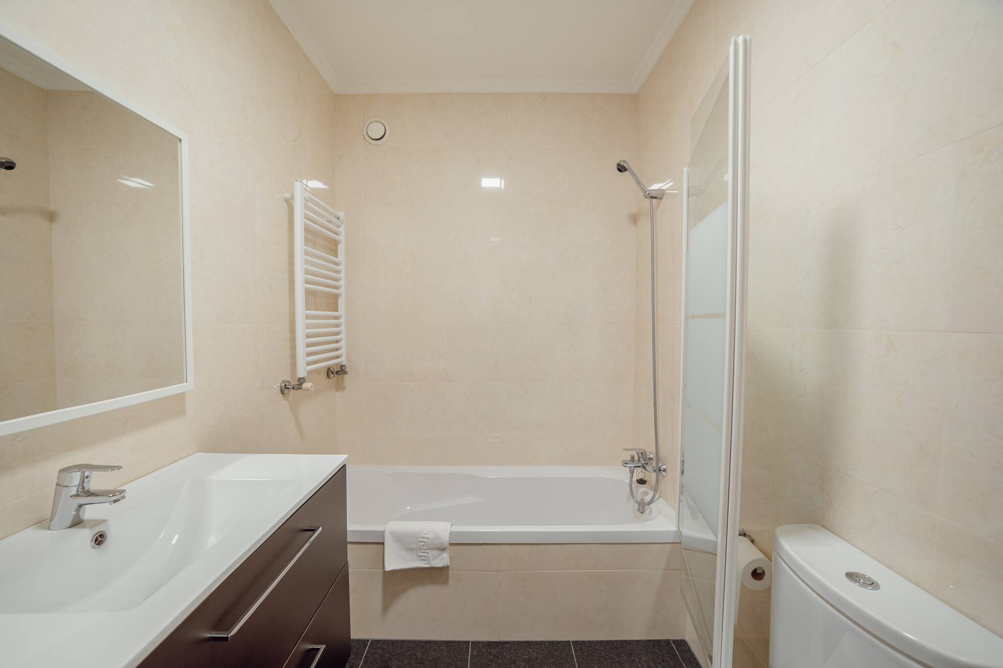 Upon entering, the apartment reveals a carefully designed space, emphasising comfort and functionality. The main suite has a luxurious king-size bed, with a private bathroom. The second bedroom has a high-quality queen-size bed, with its own complete bathroom. The house also includes a half bathroom or powder room.