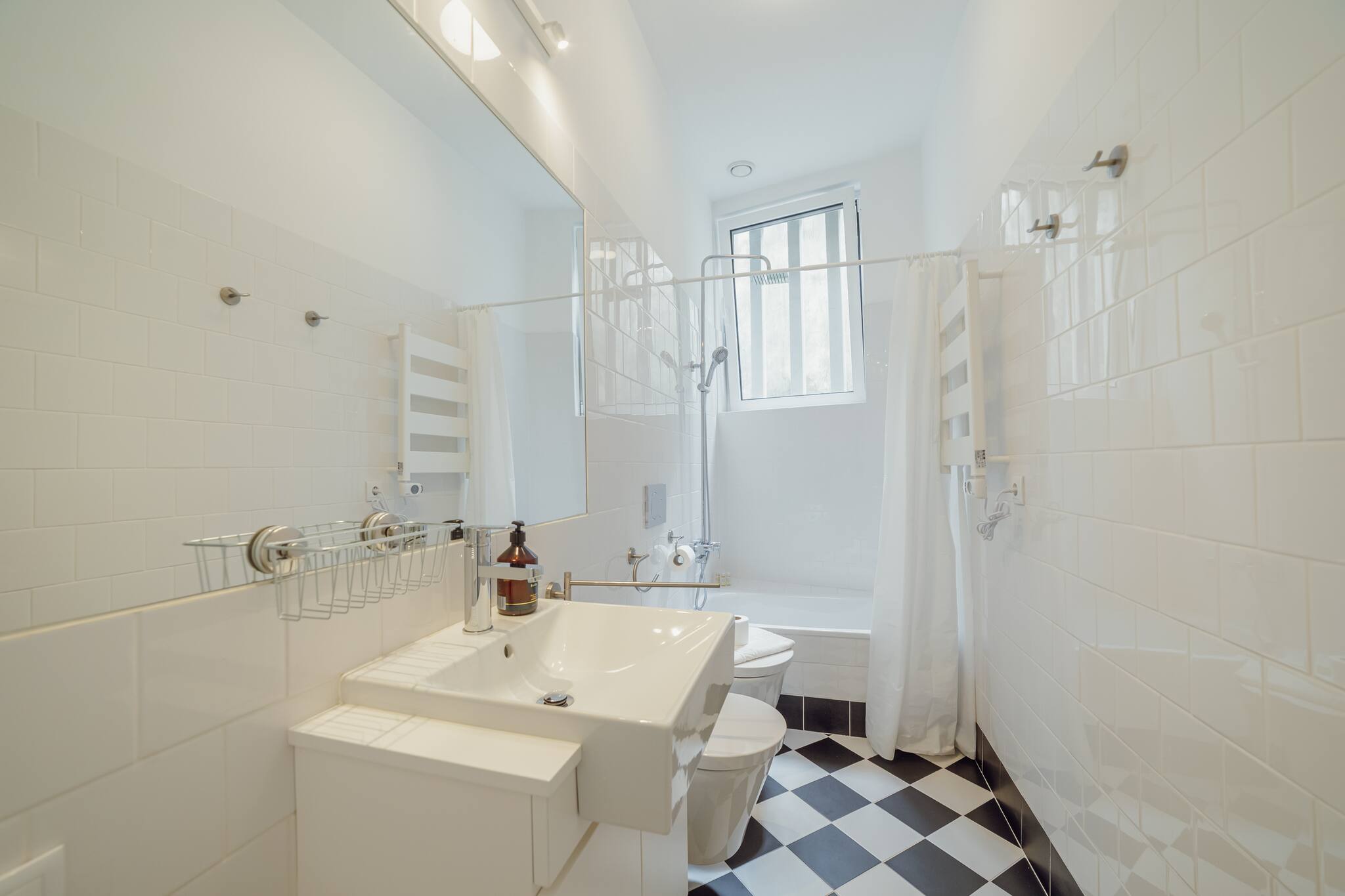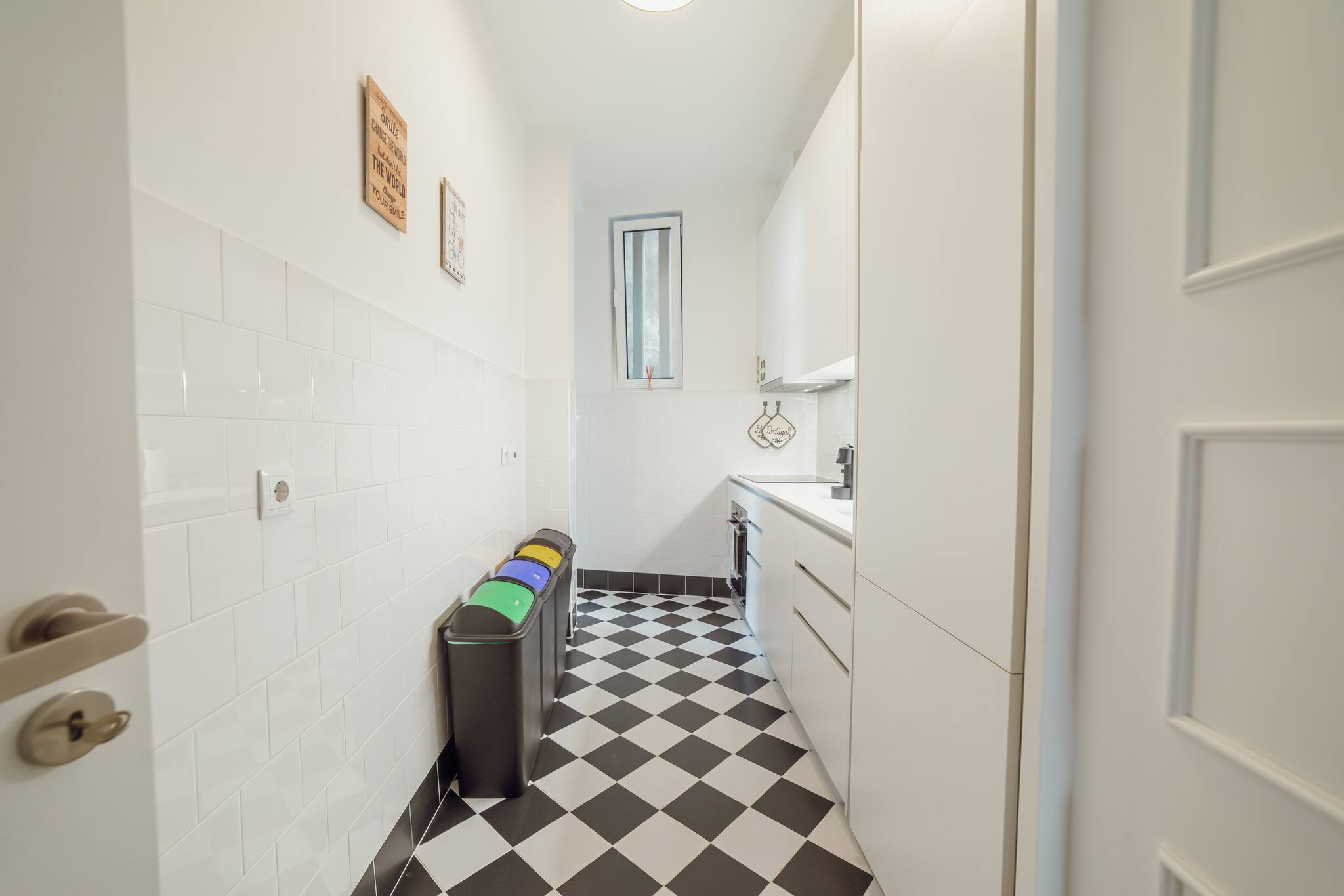 The apartment features two double beds and a sofa bed, offering a perfect rest after a day of sightseeing. The fully equipped kitchen, with a washing machine, dishwasher, and coffee machine, ensures convenience for preparing meals or simply relaxing.