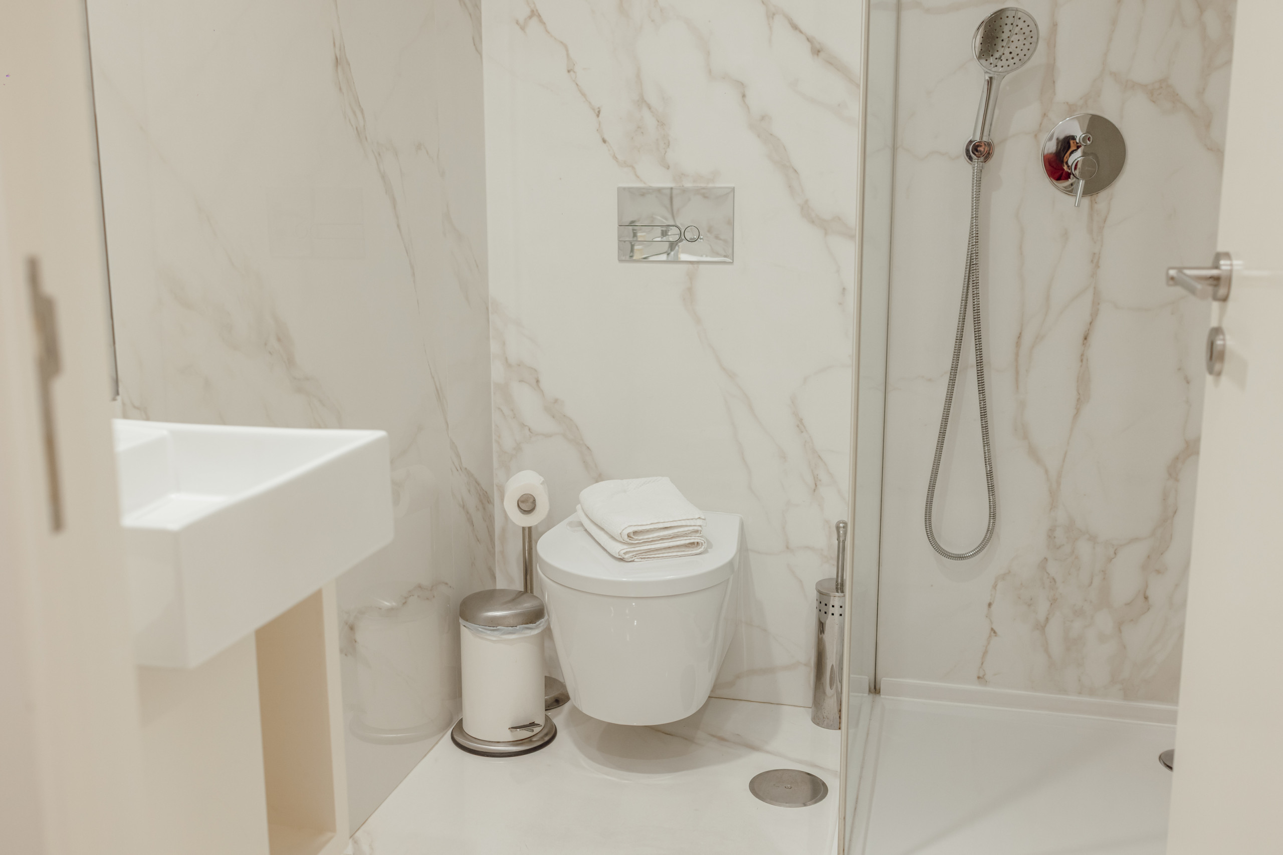 The apartment features two double beds and a sofa bed, offering a perfect rest after a day of sightseeing. The fully equipped kitchen, with a washing machine, dishwasher, and coffee machine, ensures convenience for preparing meals or simply relaxing.