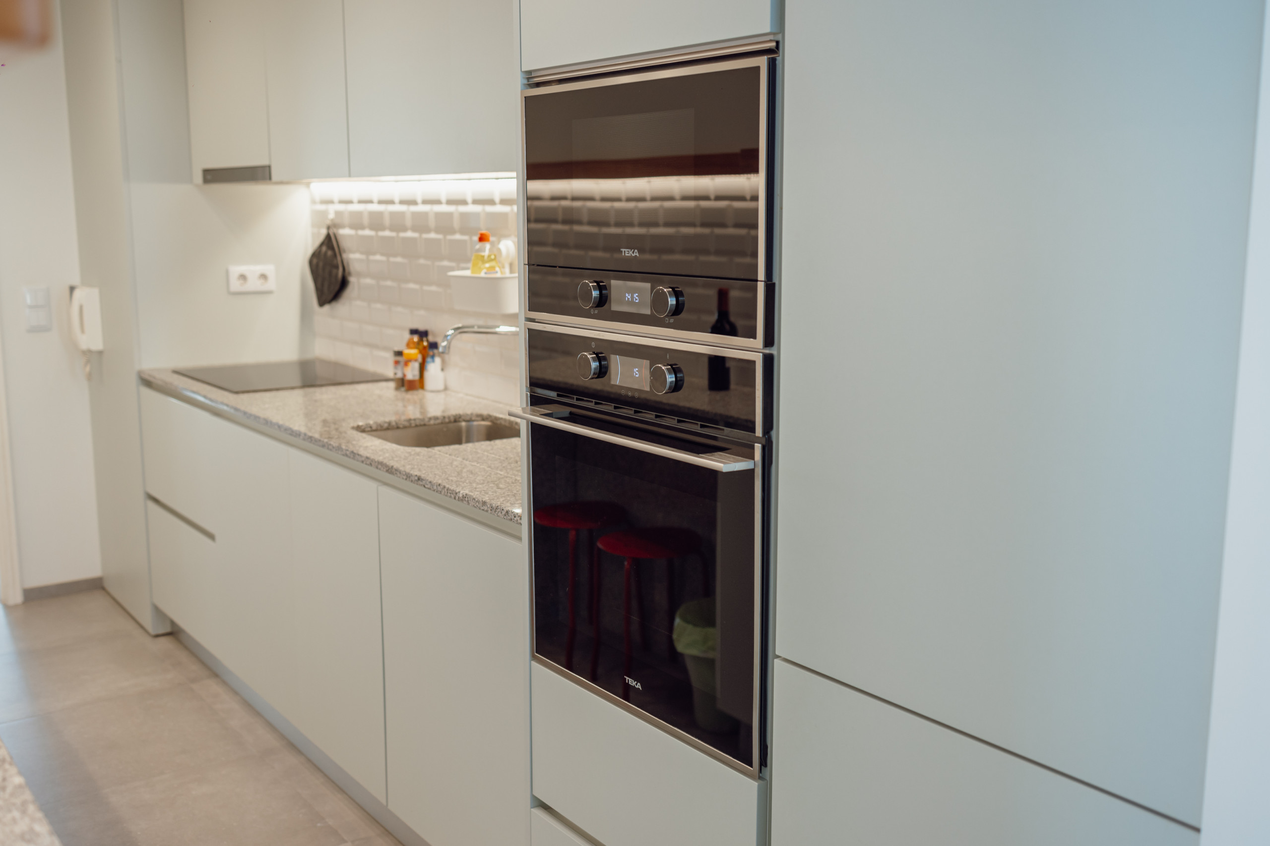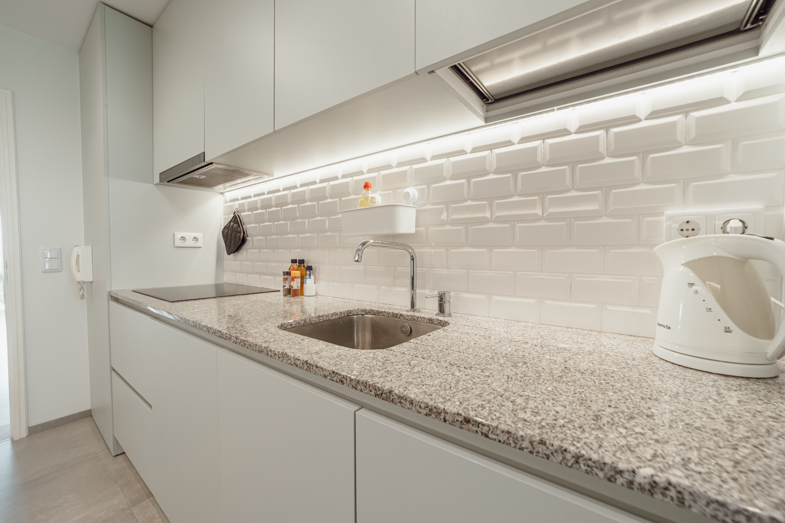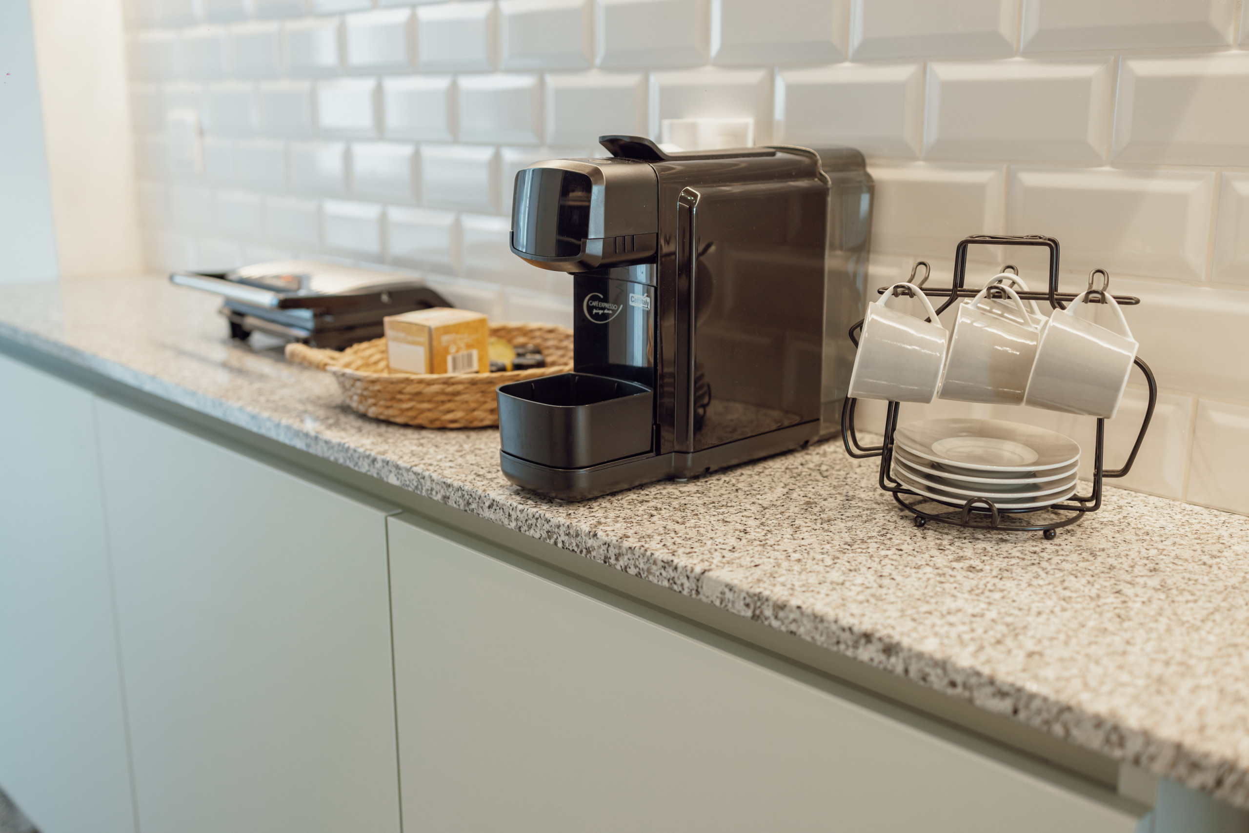 The apartment features two double beds and a sofa bed, offering a perfect rest after a day of sightseeing. The fully equipped kitchen, with a washing machine, dishwasher, and coffee machine, ensures convenience for preparing meals or simply relaxing.