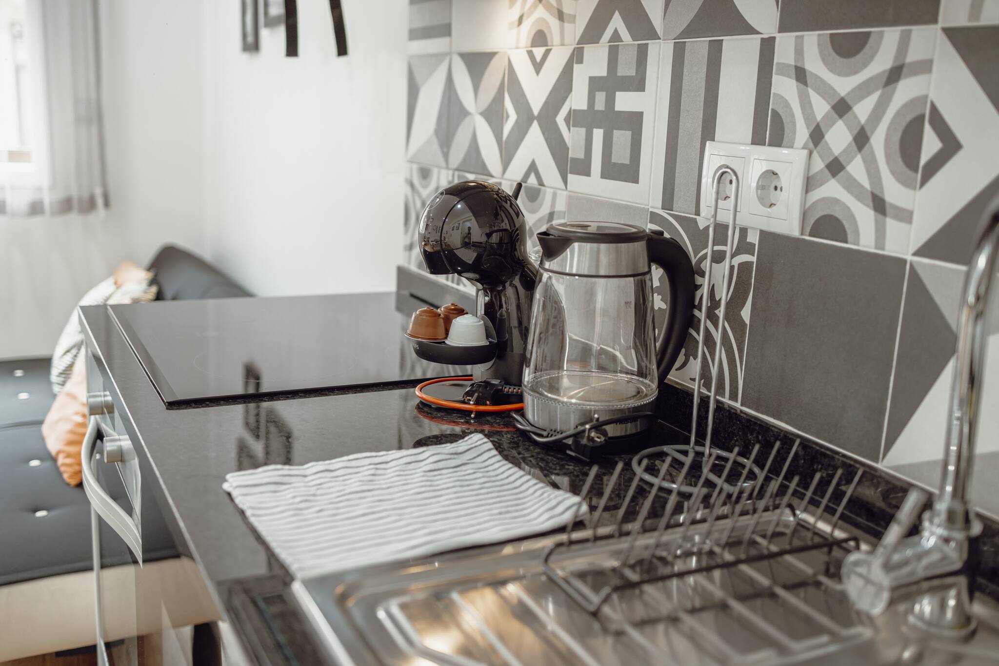 The apartment boasts a single bedroom with two double beds, providing ample sleeping space for up to four guests. The bathroom is equipped with a shower, catering to your daily needs. The kitchen is fully equipped, featuring a stove, fridge, freezer, microwave, coffee machine, and all the necessary kitchenware, allowing you to prepare your own meals with ease.