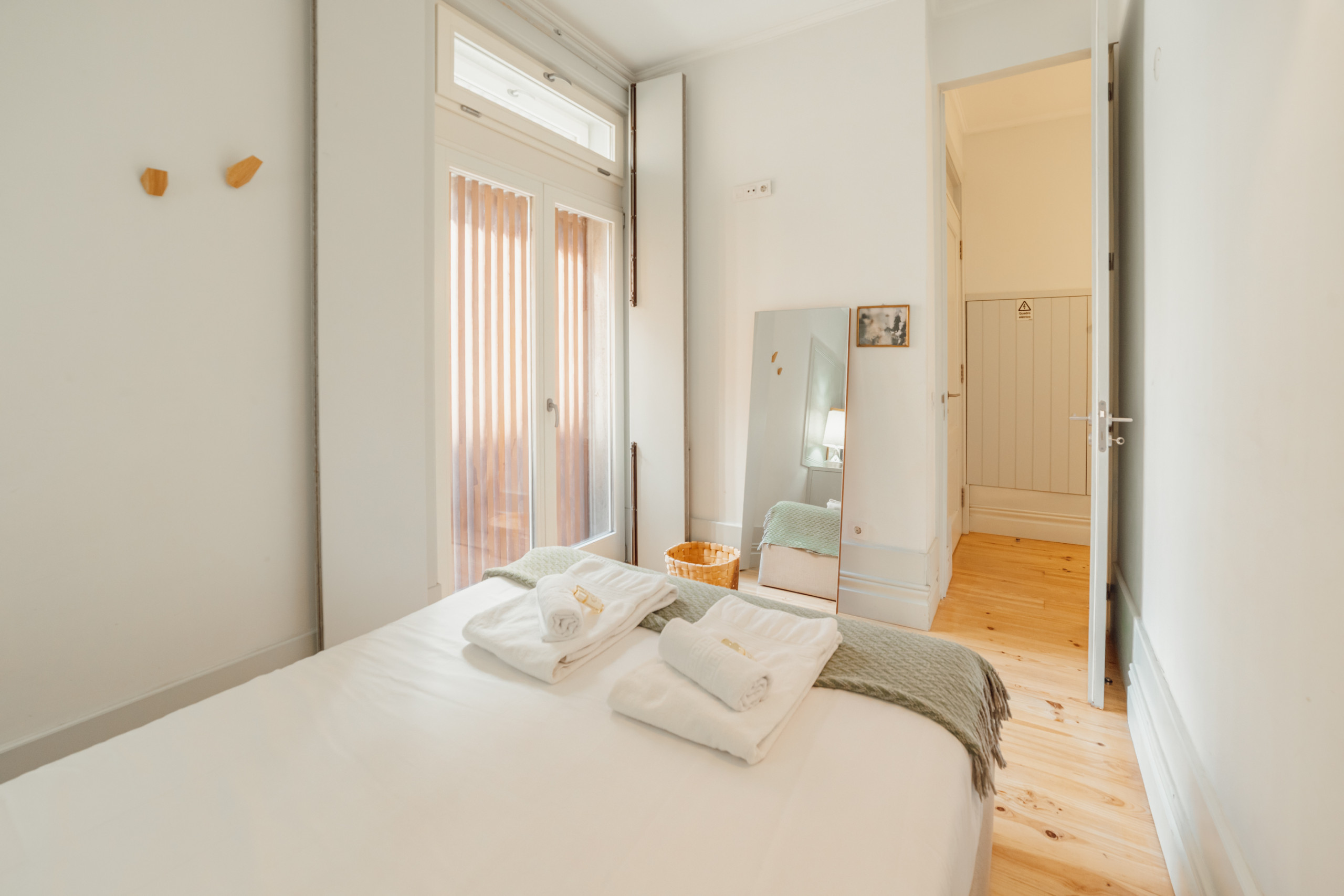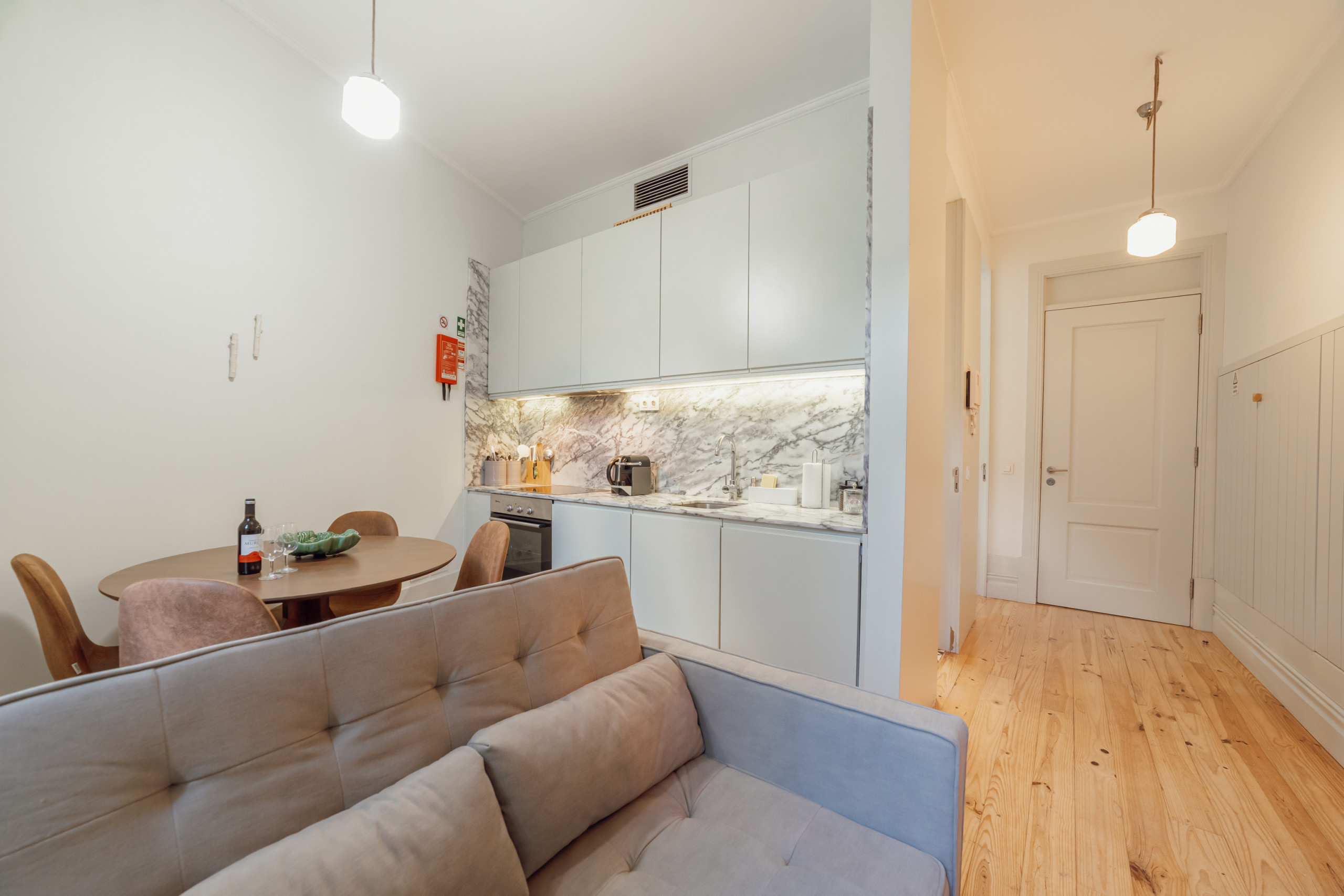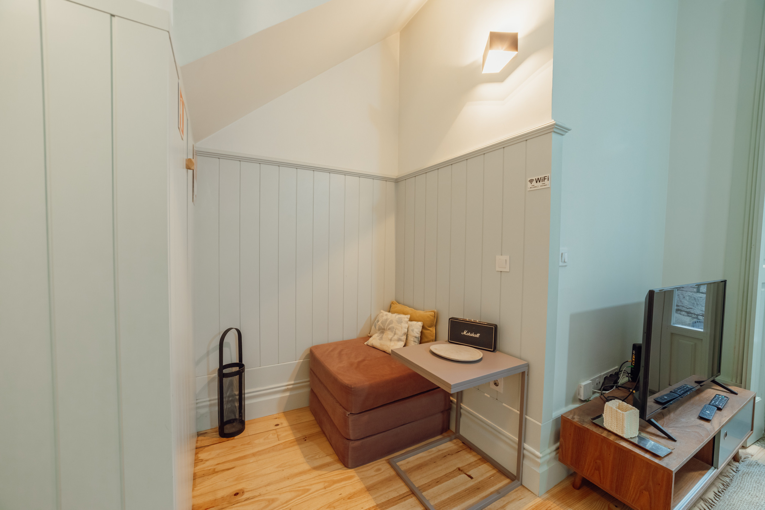 The overall design emphasizes an open and airy atmosphere, enhanced by the simplicity of the layout. A perfect blend of form and function, this studio on Constituição Street offers a stylish and comfortable sanctuary for those seeking a contemporary living space in the heart of Porto.