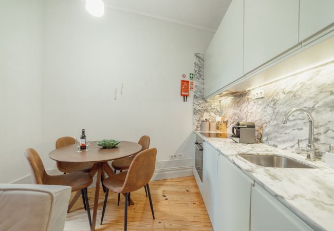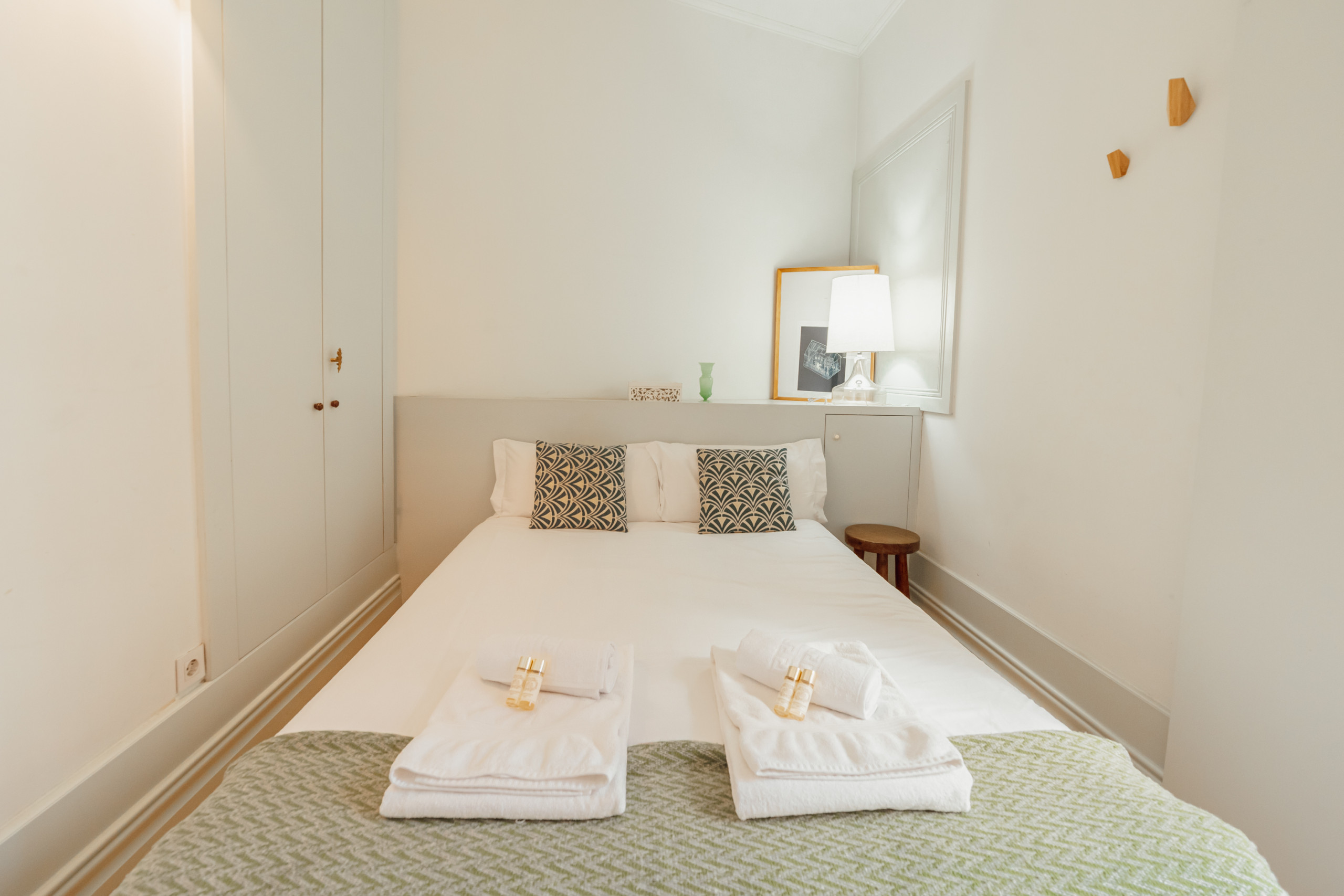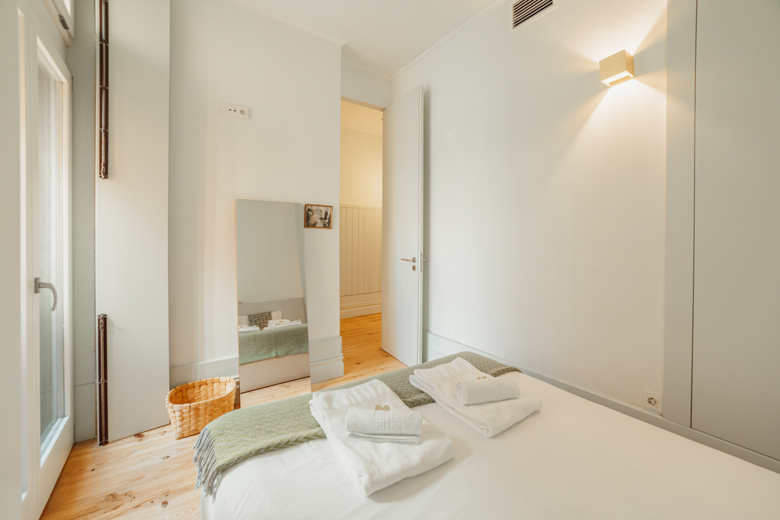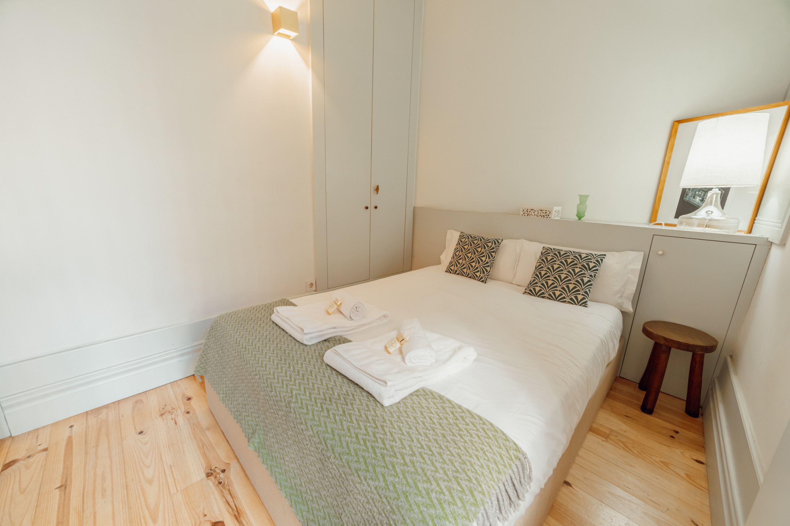 The overall design emphasizes an open and airy atmosphere, enhanced by the simplicity of the layout. A perfect blend of form and function, this studio on Constituição Street offers a stylish and comfortable sanctuary for those seeking a contemporary living space in the heart of Porto.