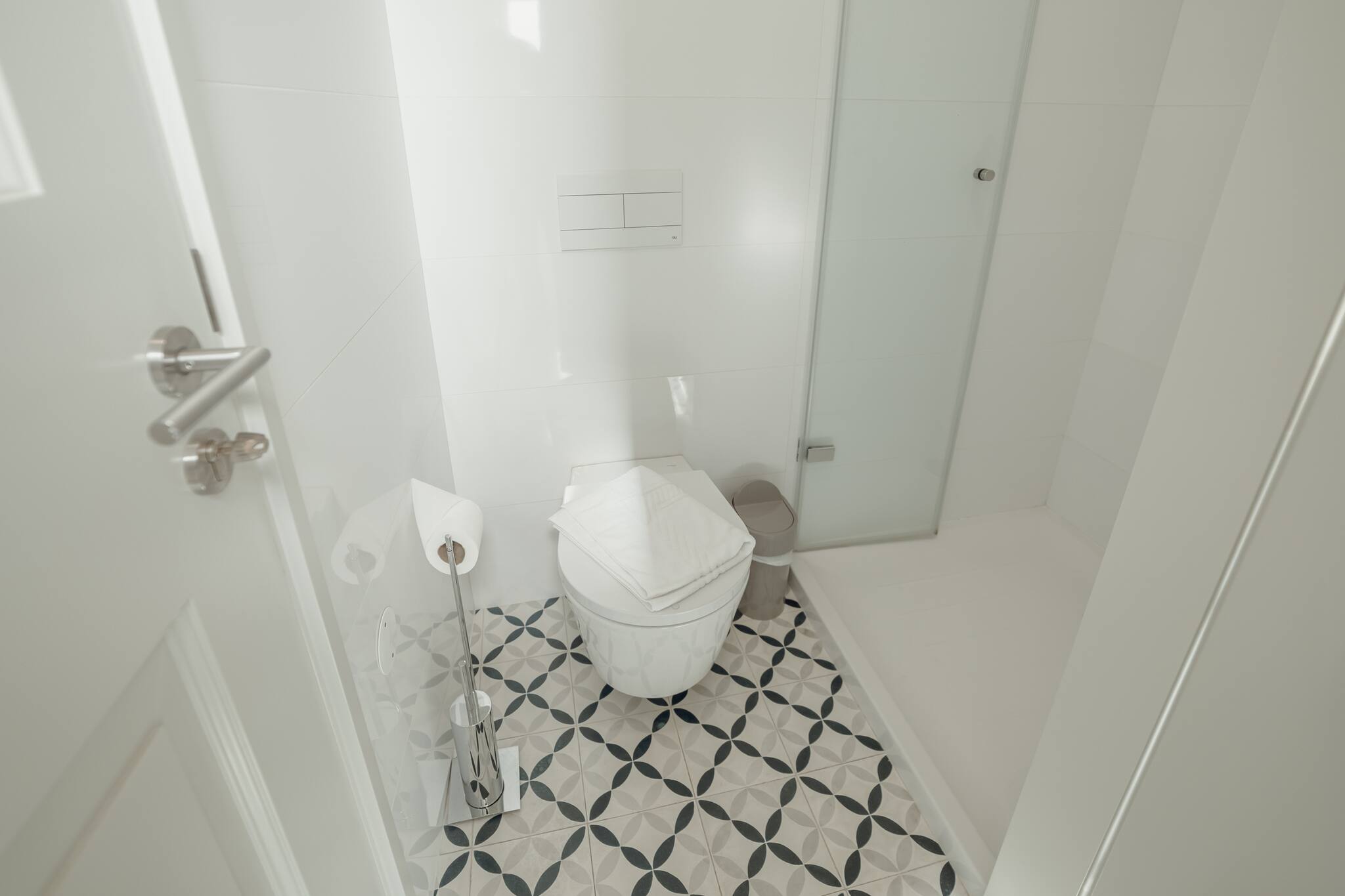 The apartment boasts a single bedroom with two double beds, providing ample sleeping space for up to four guests. The bathroom is equipped with a shower, catering to your daily needs. The kitchen is fully equipped, featuring a stove, fridge, freezer, microwave, coffee machine, and all the necessary kitchenware, allowing you to prepare your own meals with ease.