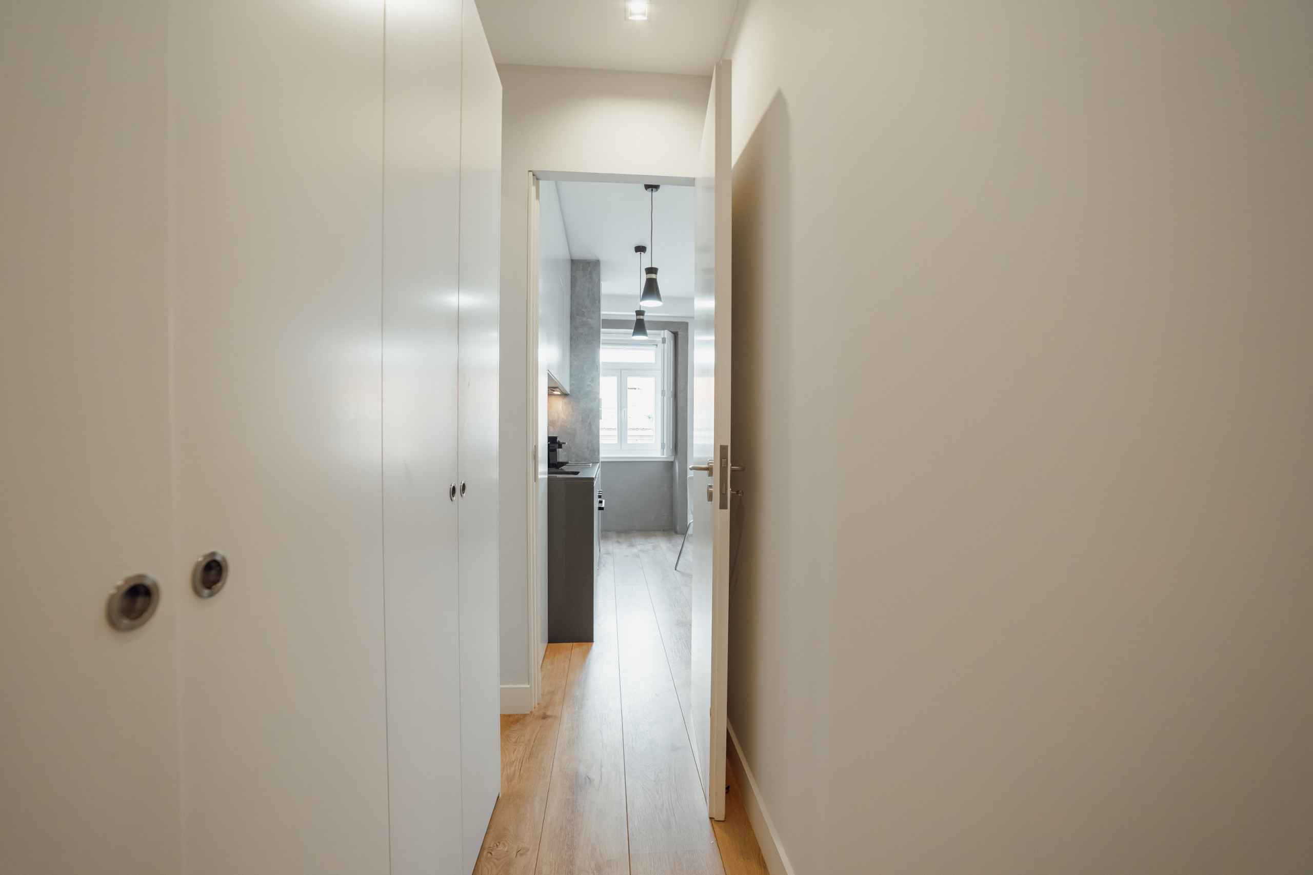 The overall design emphasizes an open and airy atmosphere, enhanced by the simplicity of the layout. A perfect blend of form and function, this studio on Constituição Street offers a stylish and comfortable sanctuary for those seeking a contemporary living space in the heart of Porto.