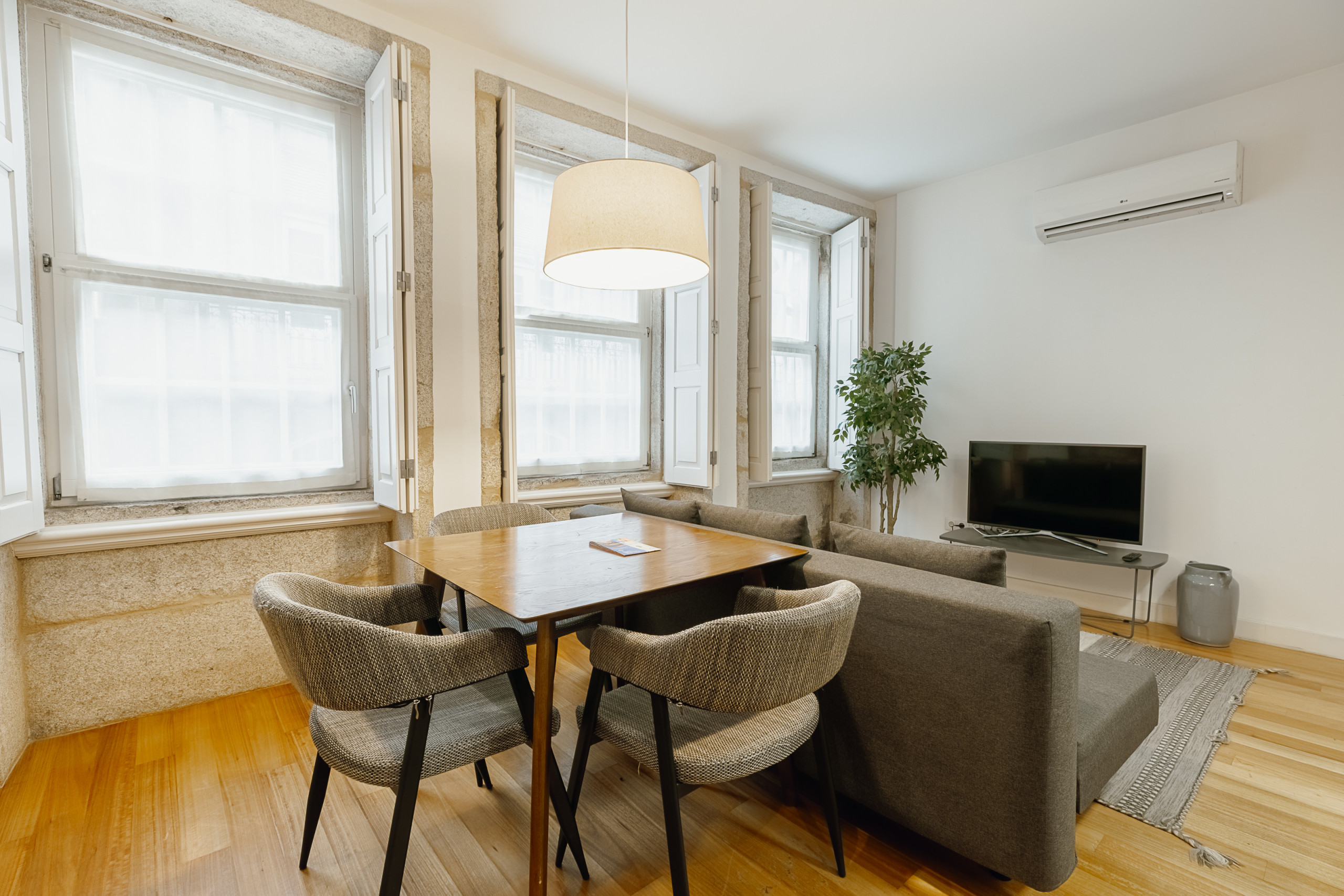 In summary, this open flat on Constituição Street in Porto is a harmonious blend of style, comfort, and functionality. It offers a tranquil open space flooded with natural light, creating an inviting atmosphere for residents to call home.