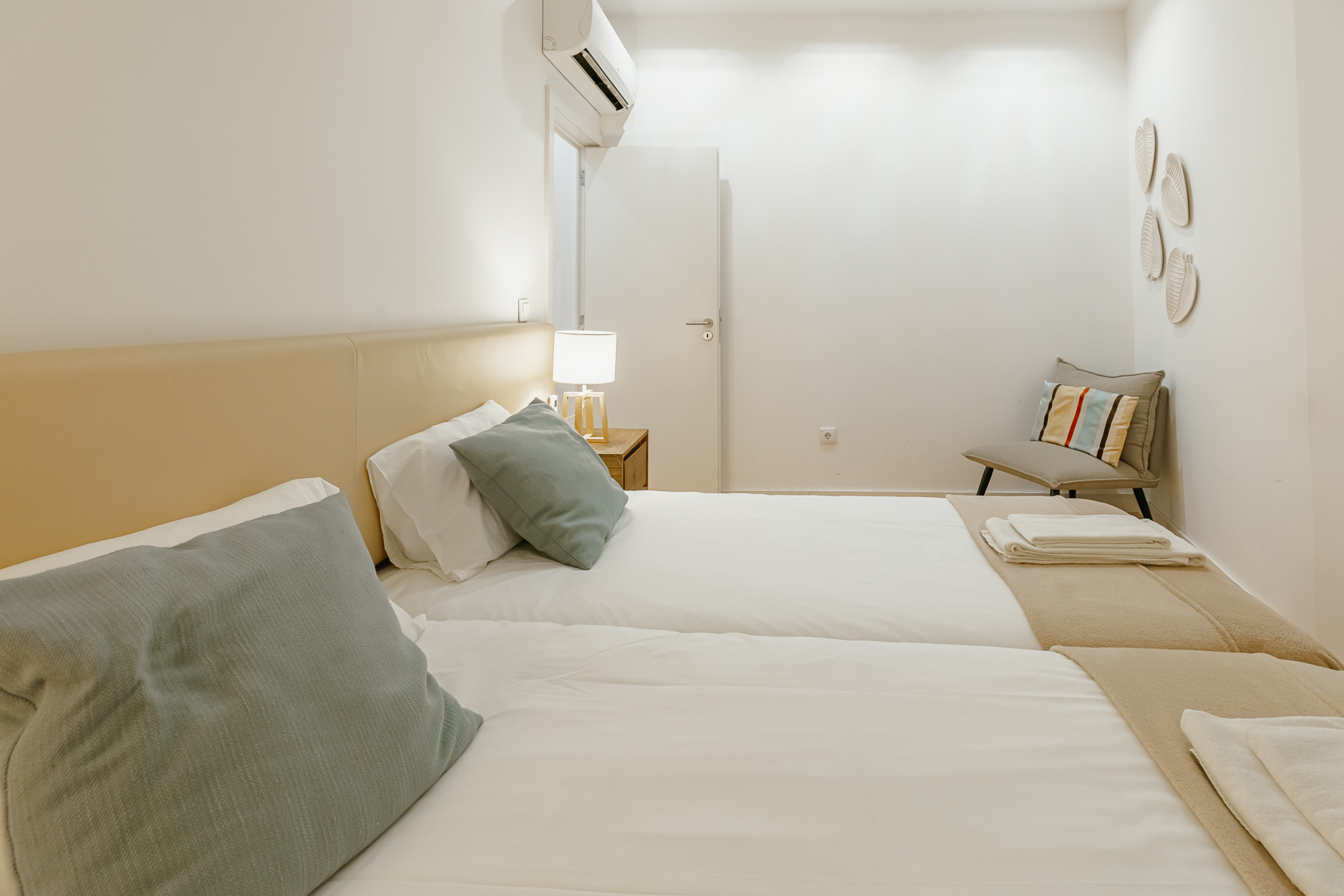The space features a bedroom with two single beds, perfect for friends, colleagues, or travellers who prefer to sleep separately. The social area in an open-concept space integrates the living room and fully equipped kitchen, with all essential appliances and utensils to prepare meals comfortably. The living room also includes a single sofa bed, allowing accommodation for up to three people in total.