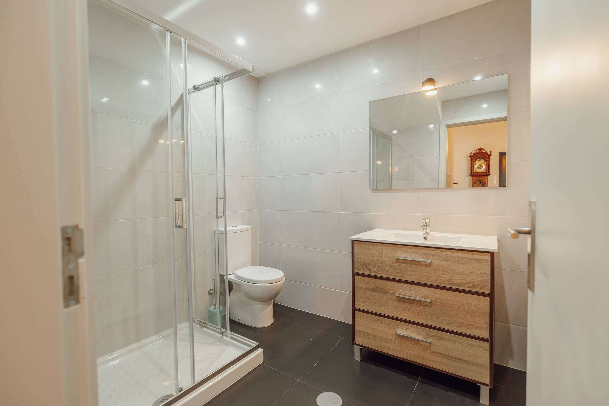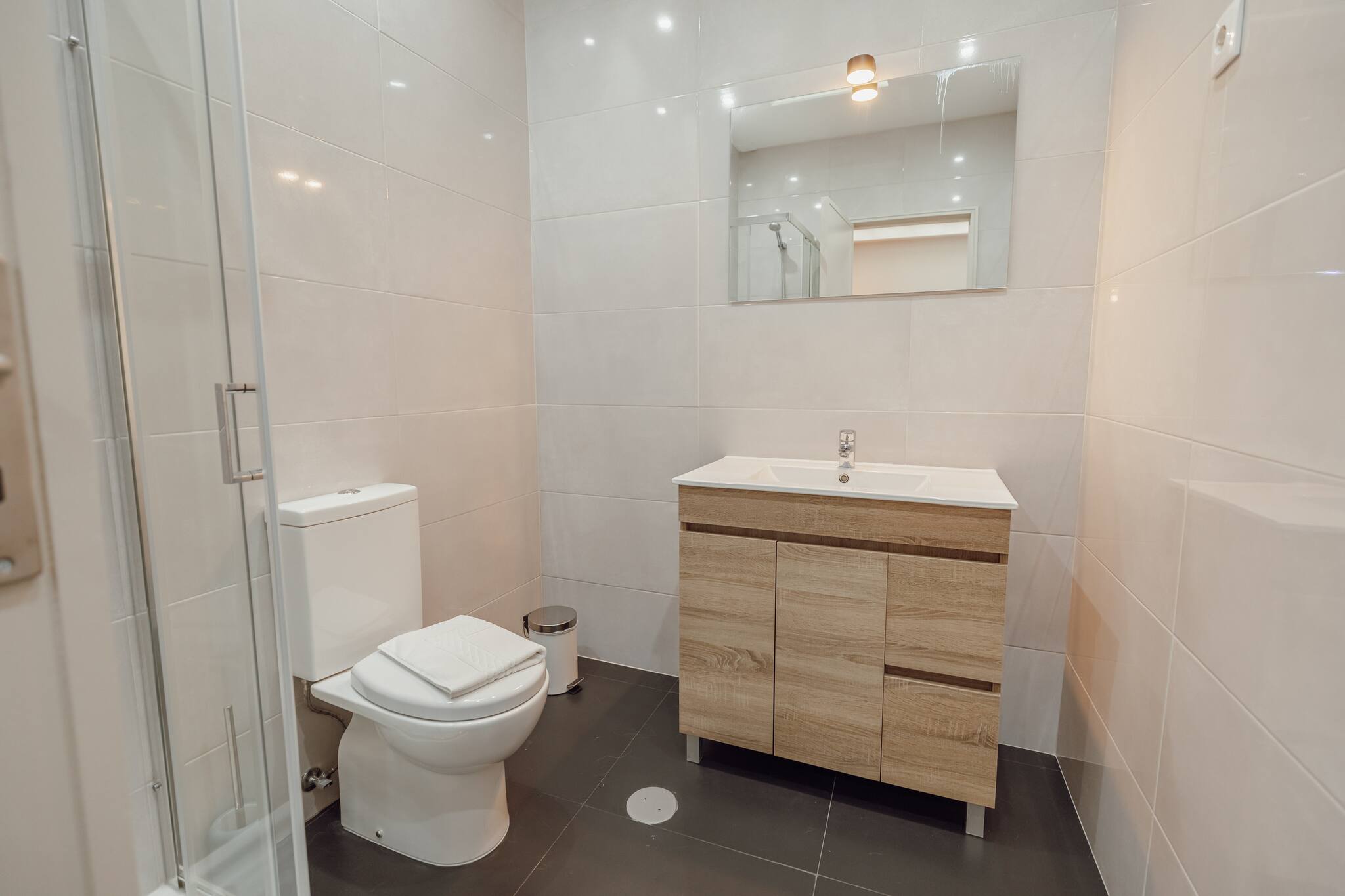 The apartment features 3 bedrooms, accommodating up to 4 guests. The bedrooms are equipped with 2 double beds, 1 double sofa bed, and 1 single bed, providing ample sleeping space. There are 3 bathrooms, all with showers, ensuring privacy and convenience.