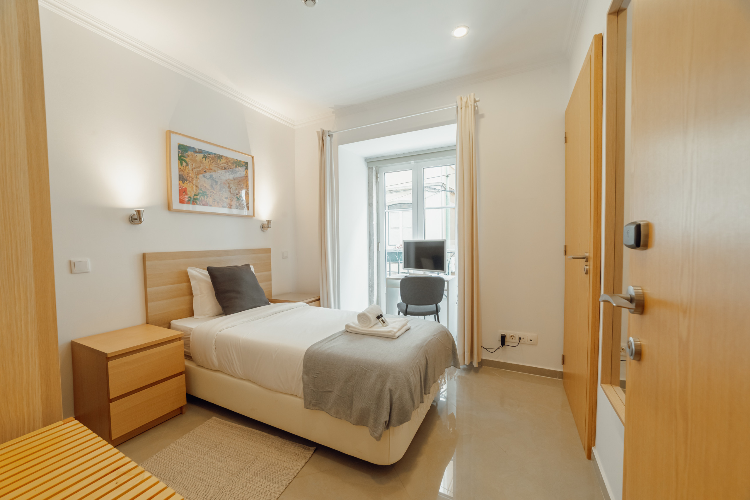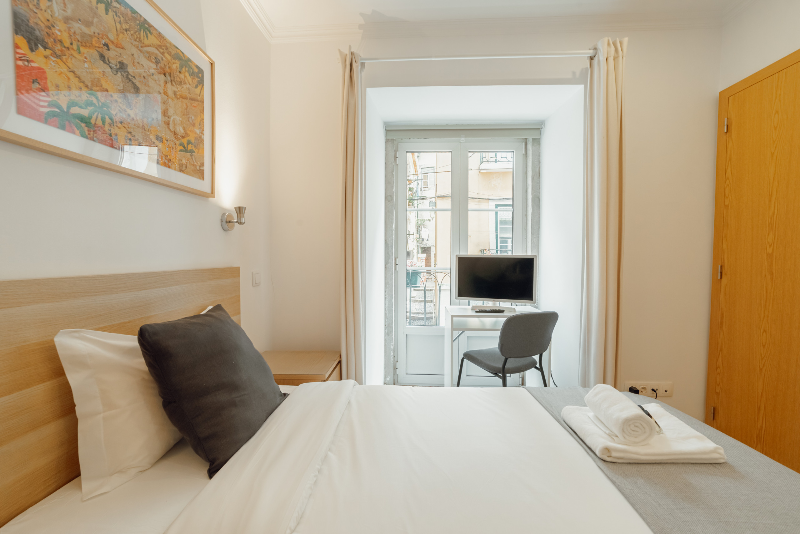 The rent by room in Lisbon has 1 bedrooms and has capacity for 1 people. The rent by room is homely, is a new build, and is 12 m². The house is situated in a residential neighborhood in the center of the city. The accommodation is equipped with the following items: lift, internet (Wi-Fi), hair dryer, balcony, electric heating, 1 TV. the kitchen, kettle is provided.