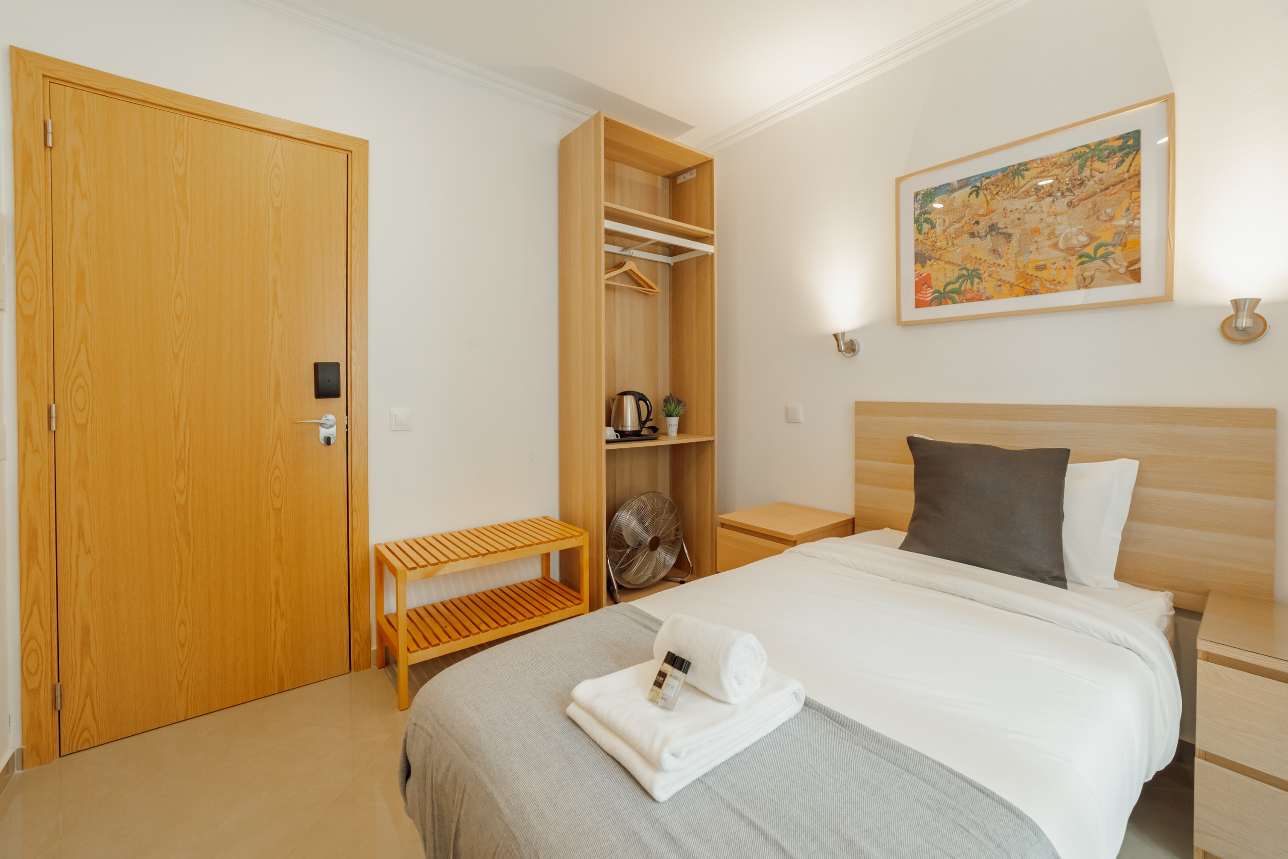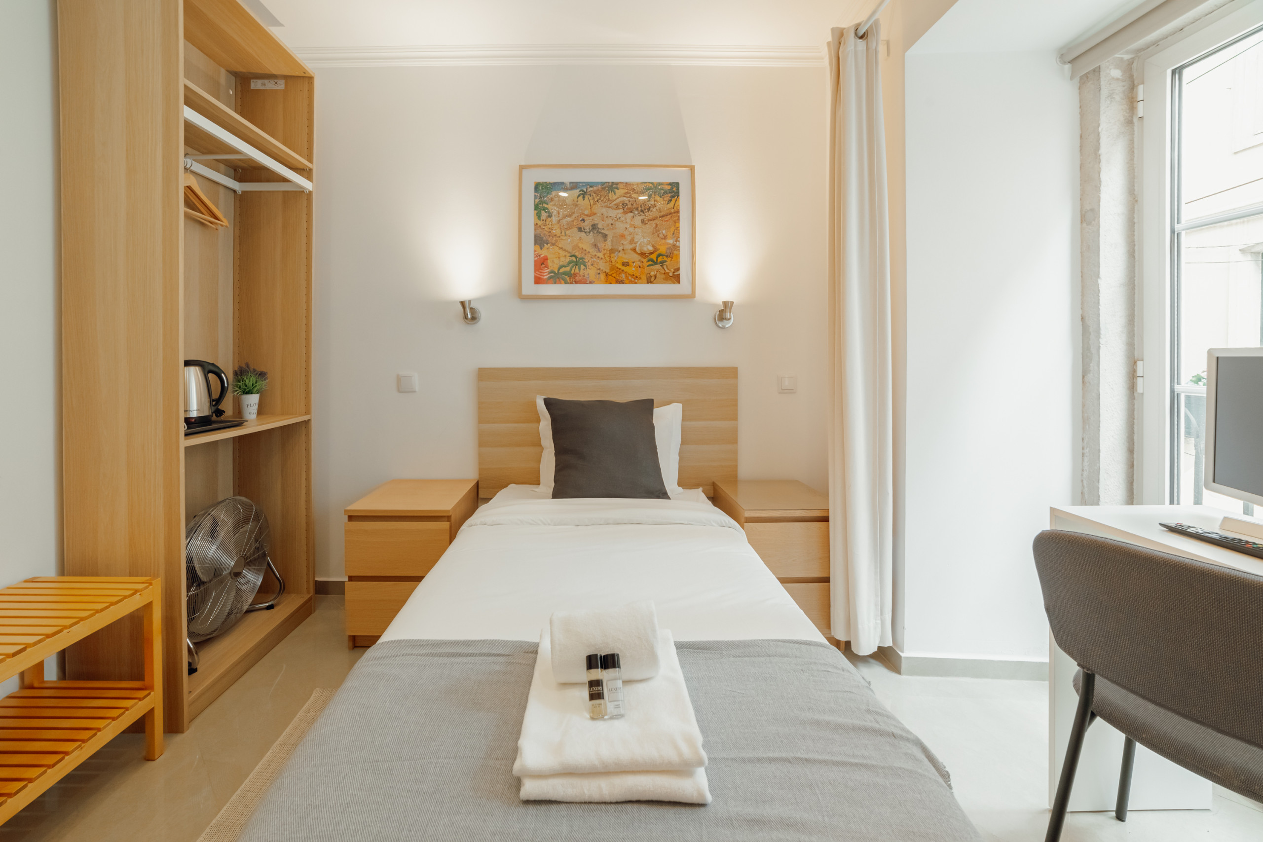 The rent by room in Lisbon has 1 bedrooms and has capacity for 1 people. The rent by room is homely, is a new build, and is 12 m². The house is situated in a residential neighborhood in the center of the city.The accommodation is equipped with the following items: lift, internet (Wi-Fi), hair dryer, balcony, electric heating, 1 TV.the kitchen, kettle is provided.