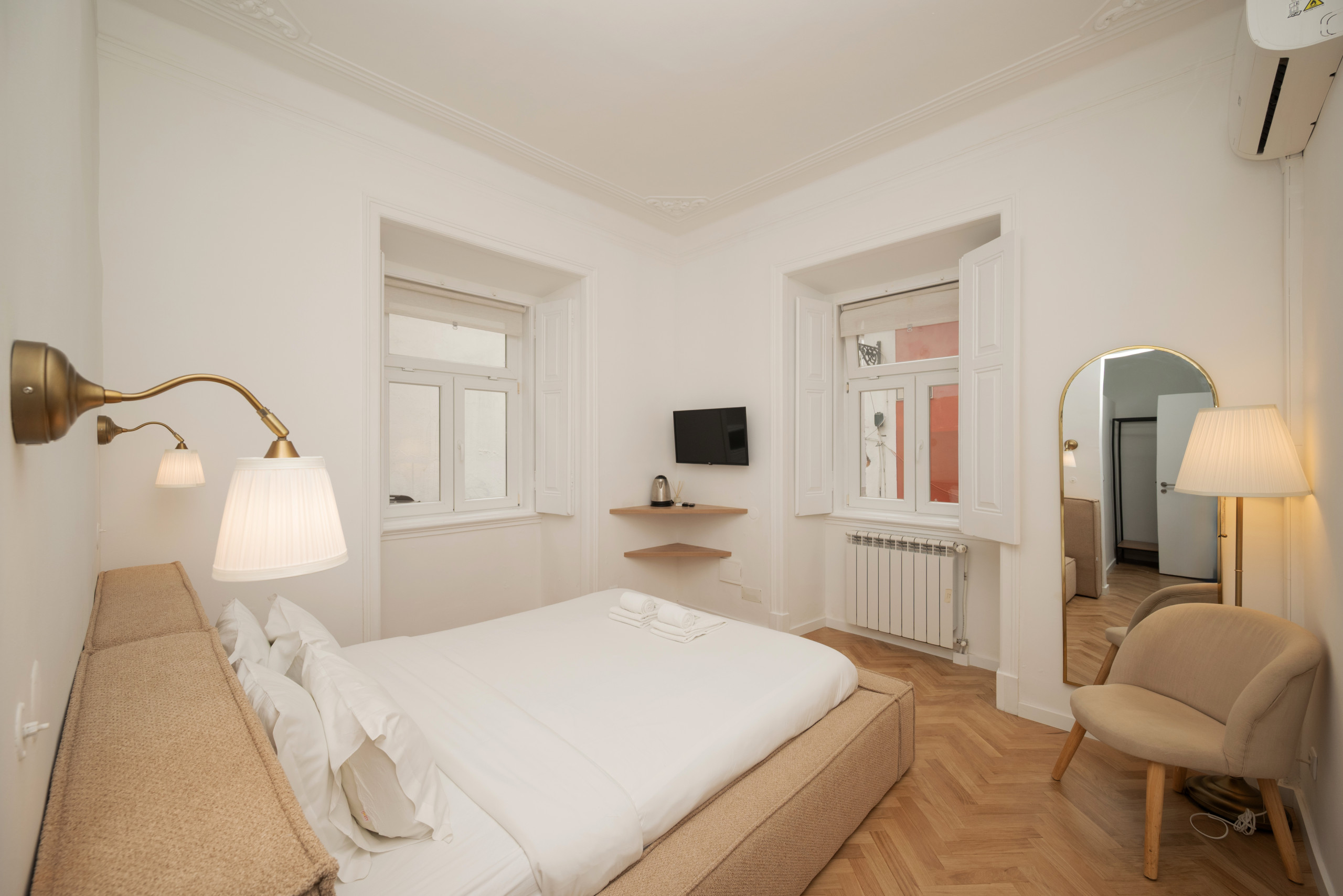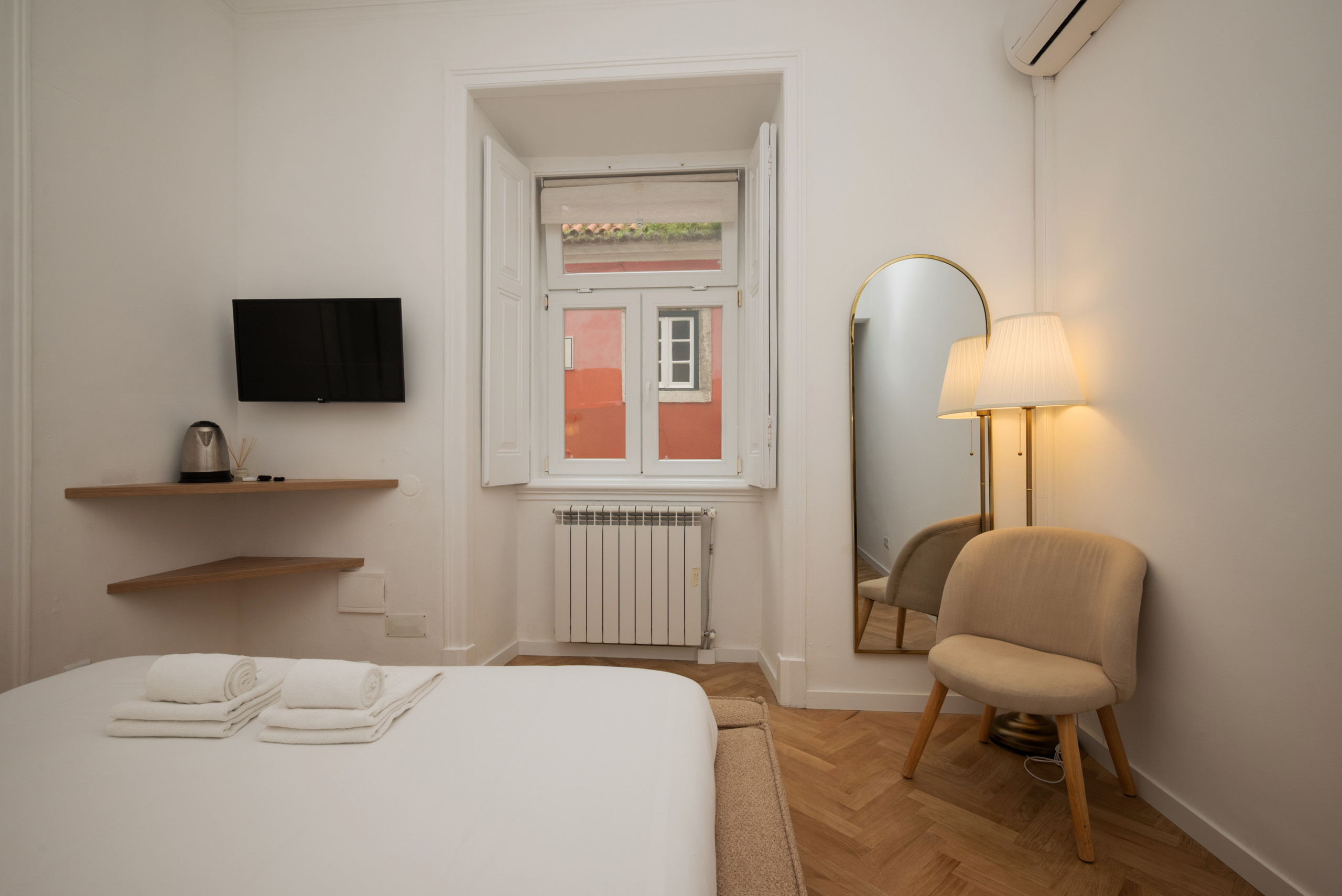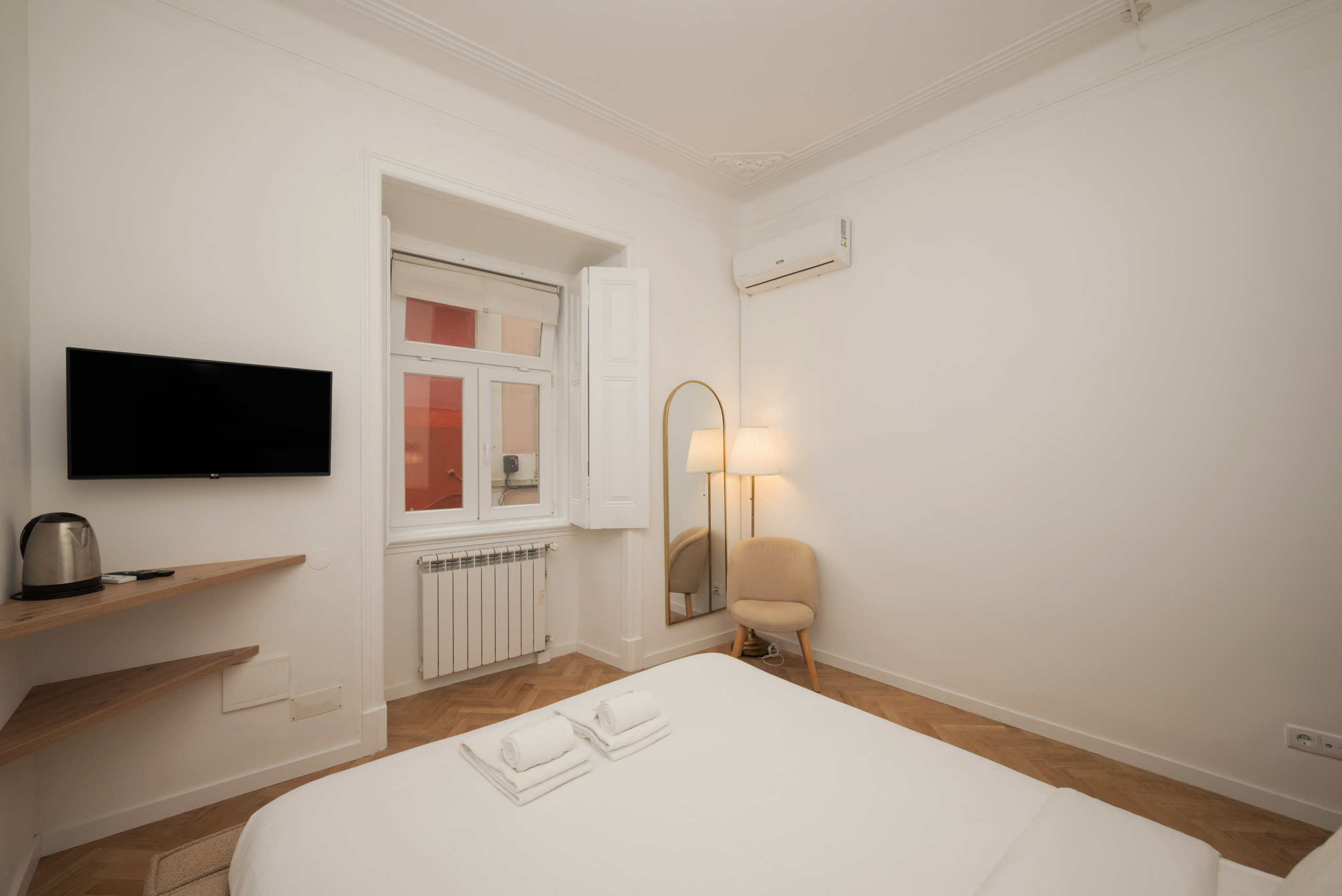 The rent by room in Lisbon has 1 bedrooms and has capacity for 2 people. The rent by room is 20 m². The accommodation is equipped with the following items: iron, internet (Wi-Fi), hair dryer, central heating, air conditioning throughout the house, 1 TV. the kitchen, refrigerator, microwave, dishes/cutlery, kitchen utensils, coffee machine, toaster and kettle are provided.
